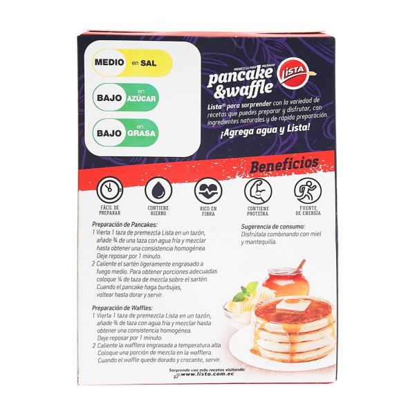 - La Premezcla de Pancake & Waffle Lista solo necesita agua para prepararse