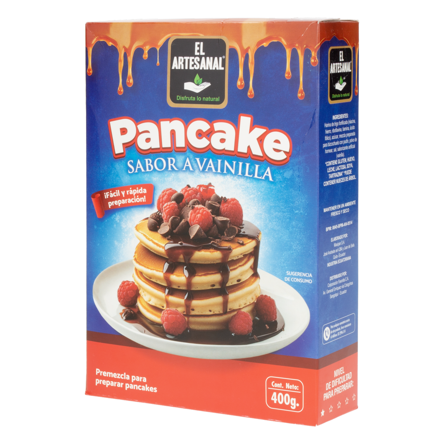 - Disfruta de pancakes esponjosos y aromáticos con la premezcla de vainilla EL ARTESANAL. Fácil y rápida de preparar, convierte tus desayunos y meriendas en momentos dulces y especiales. Perfecta para acompañar con frutas, miel o tu jarabe favorito, cada bocado es puro placer