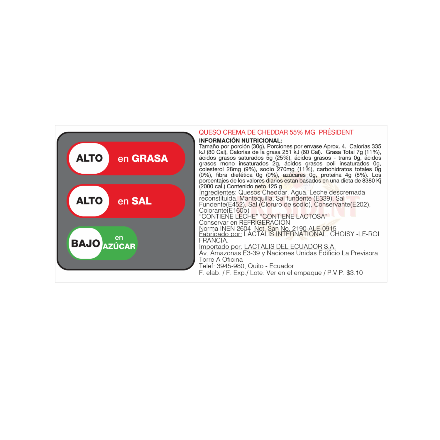 Queso Crema Cheddar PRÉSIDENT 125 G