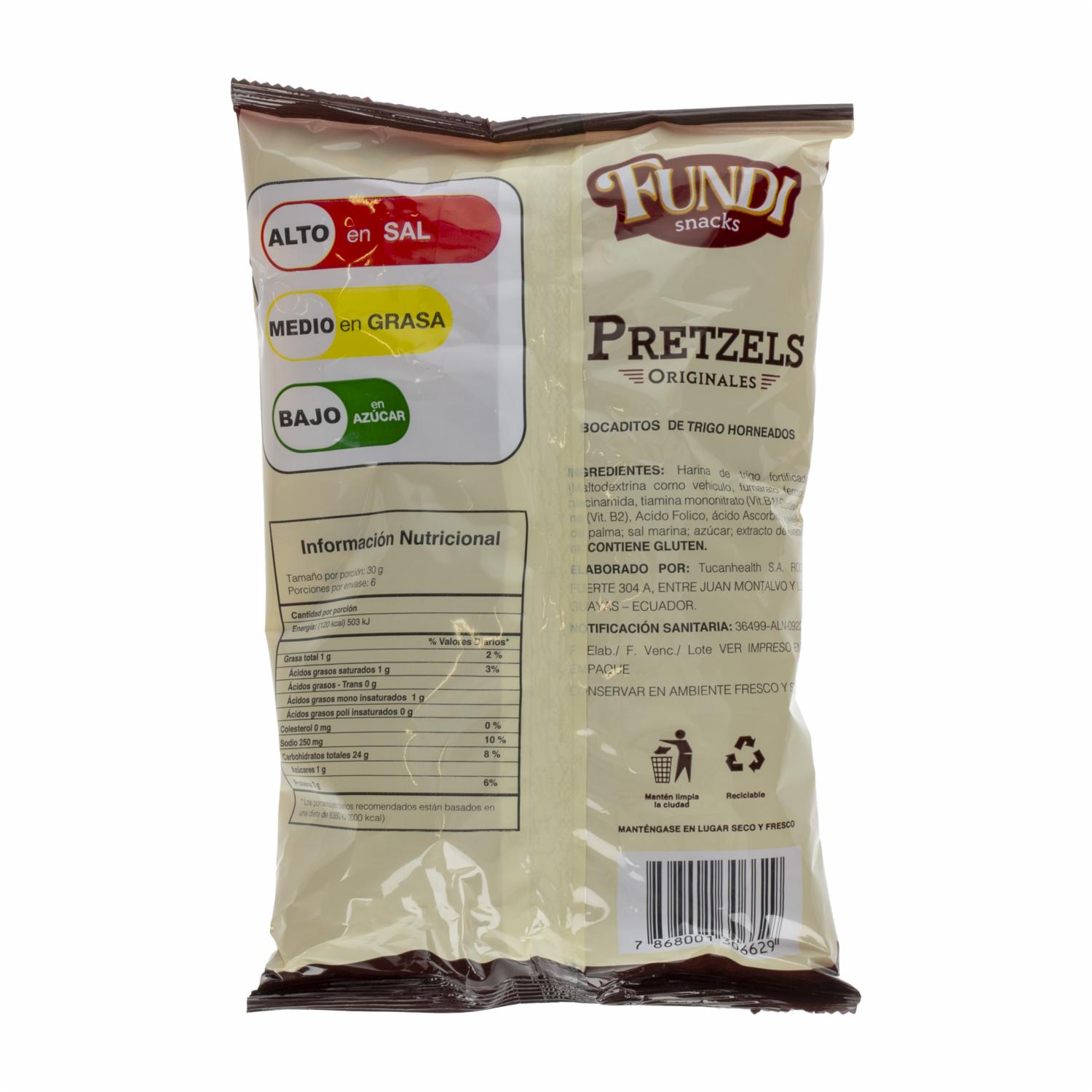 Pretzels Horneados FUNDI SNACKS 180 G – FUNDI SNACKS. Disponible en nuestros locales. Precio y stock pueden variar según la tienda.