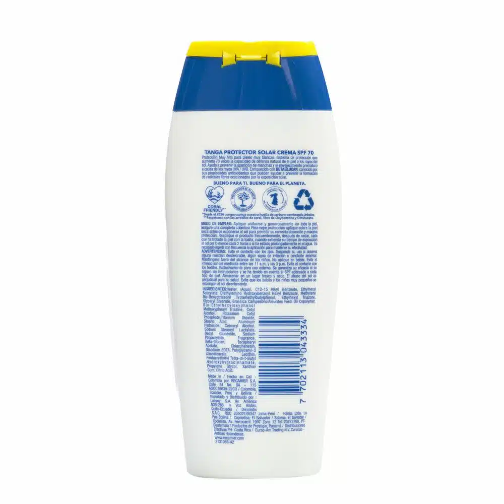 Protector Solar En Crema SPF 70 TANGA 220 Ml