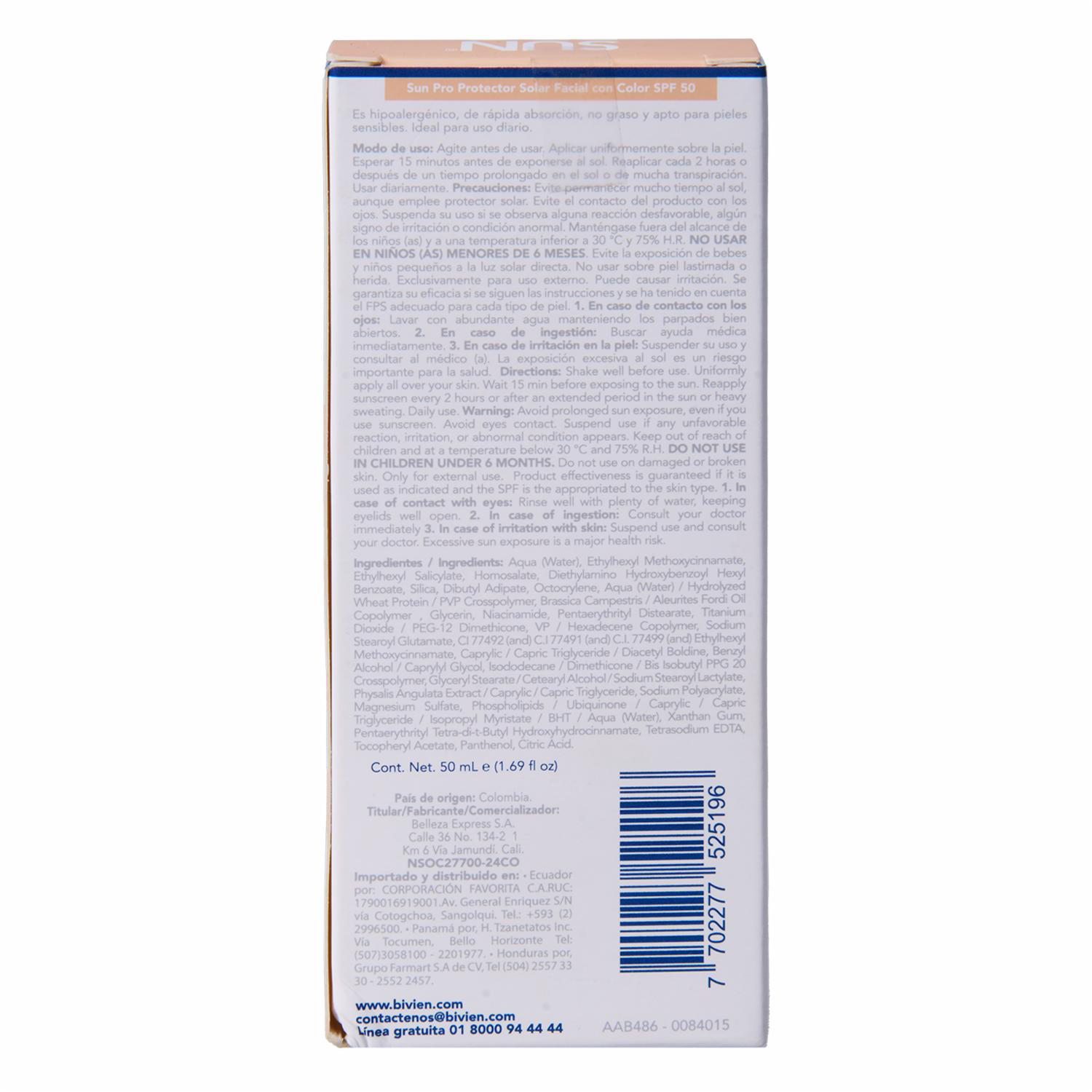 Protector Solar Facial Con Color SPF 50 Textura Ligera SUN PRO 50 Ml