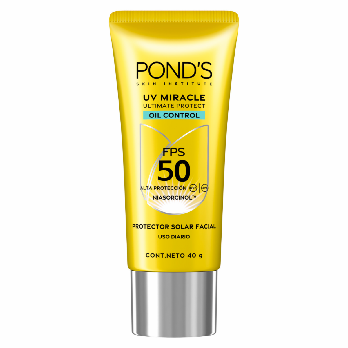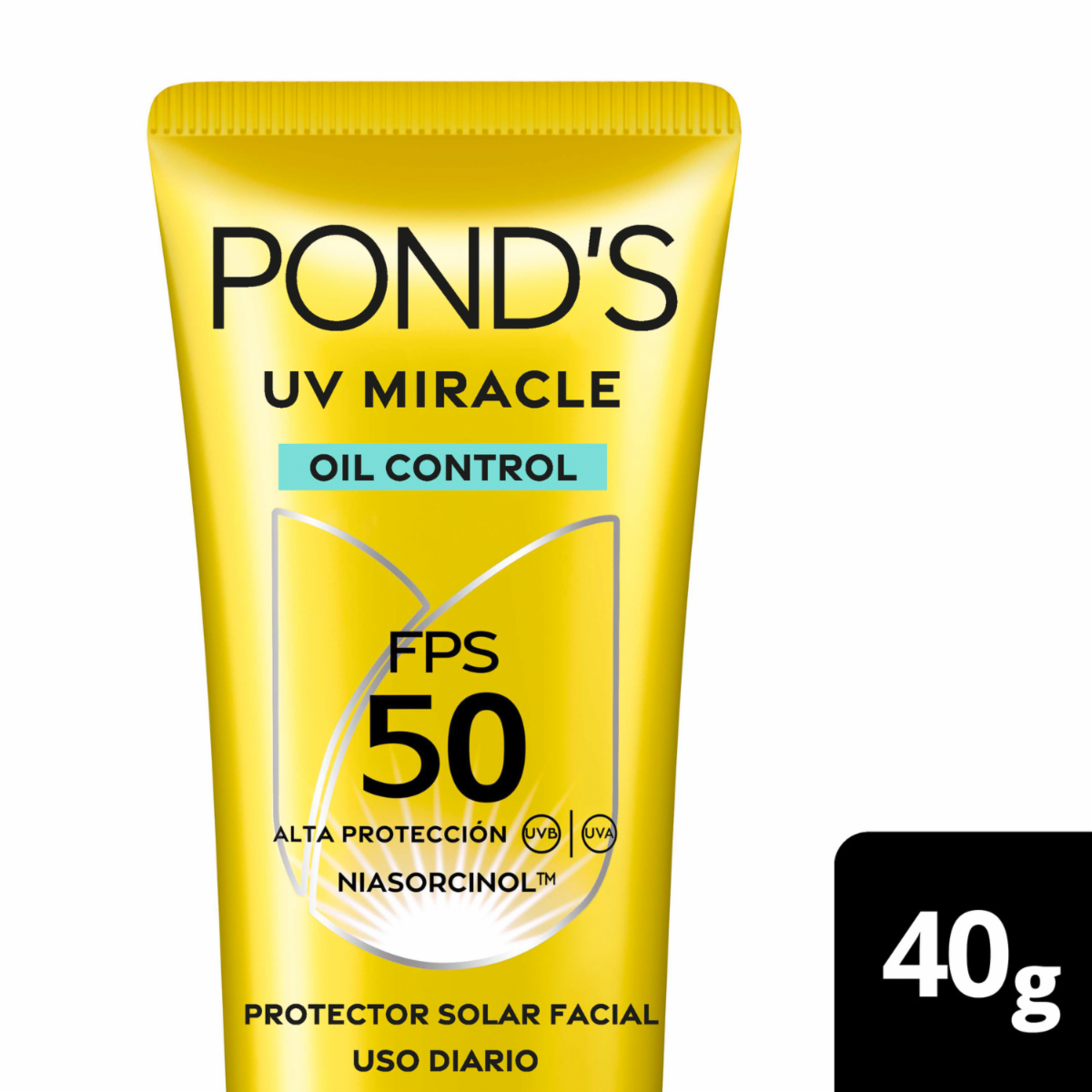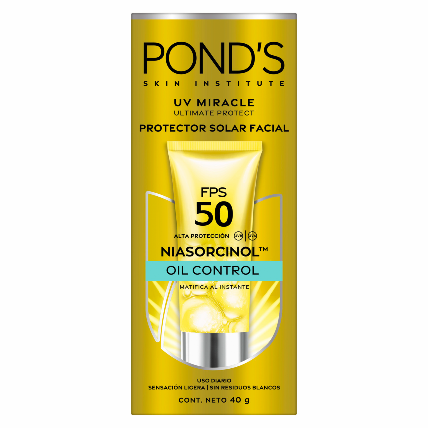 - Protector Solar Facial FPS 50 UV Oil Control Miracle Bright de PONDS en presentación de 40G. Ideal para uso diario, elaborado con ingredientes seleccionados que brindan beneficios visibles desde el primer uso