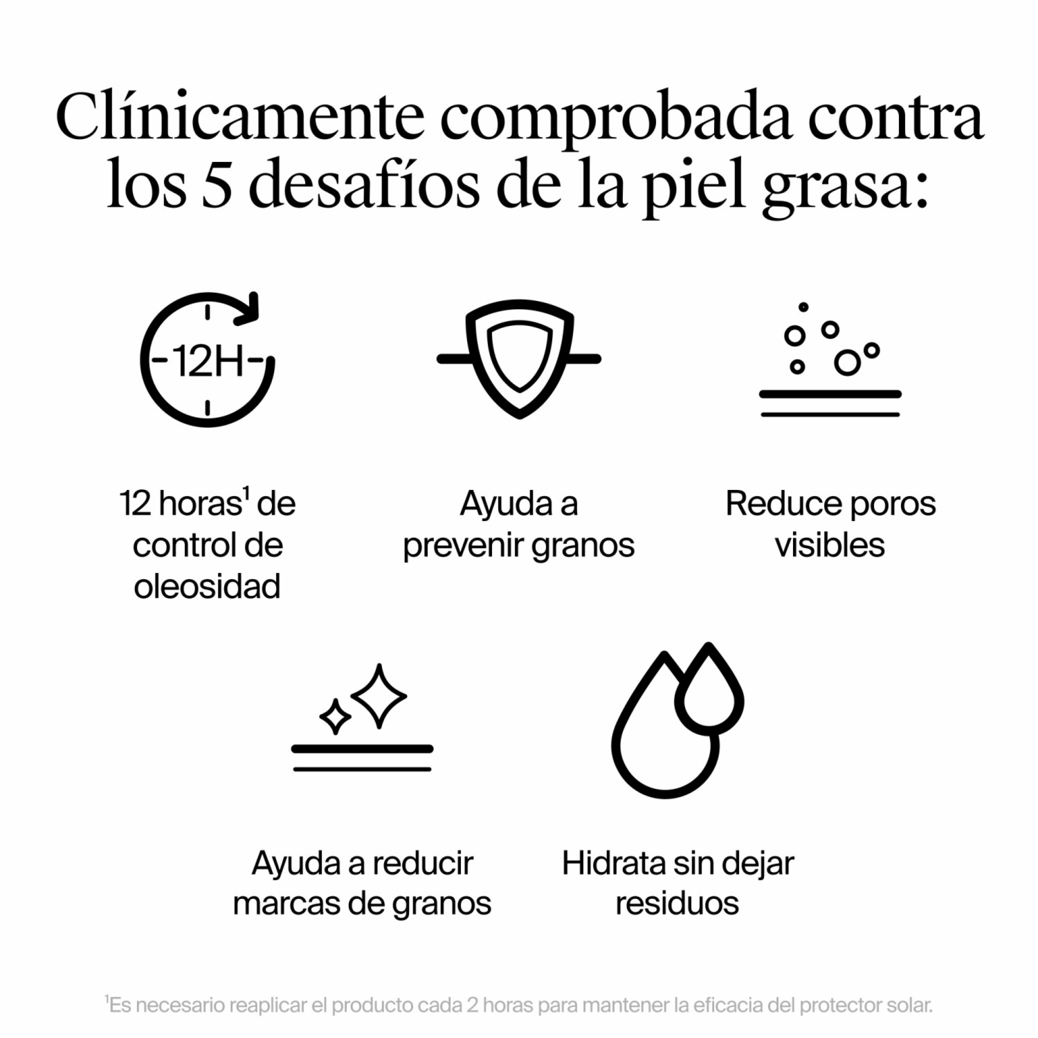 Protección solar avanzada e invisible con textura ultrafluida que combate los 5 desafíos de la piel grasa. Con resultados clínicamente probados