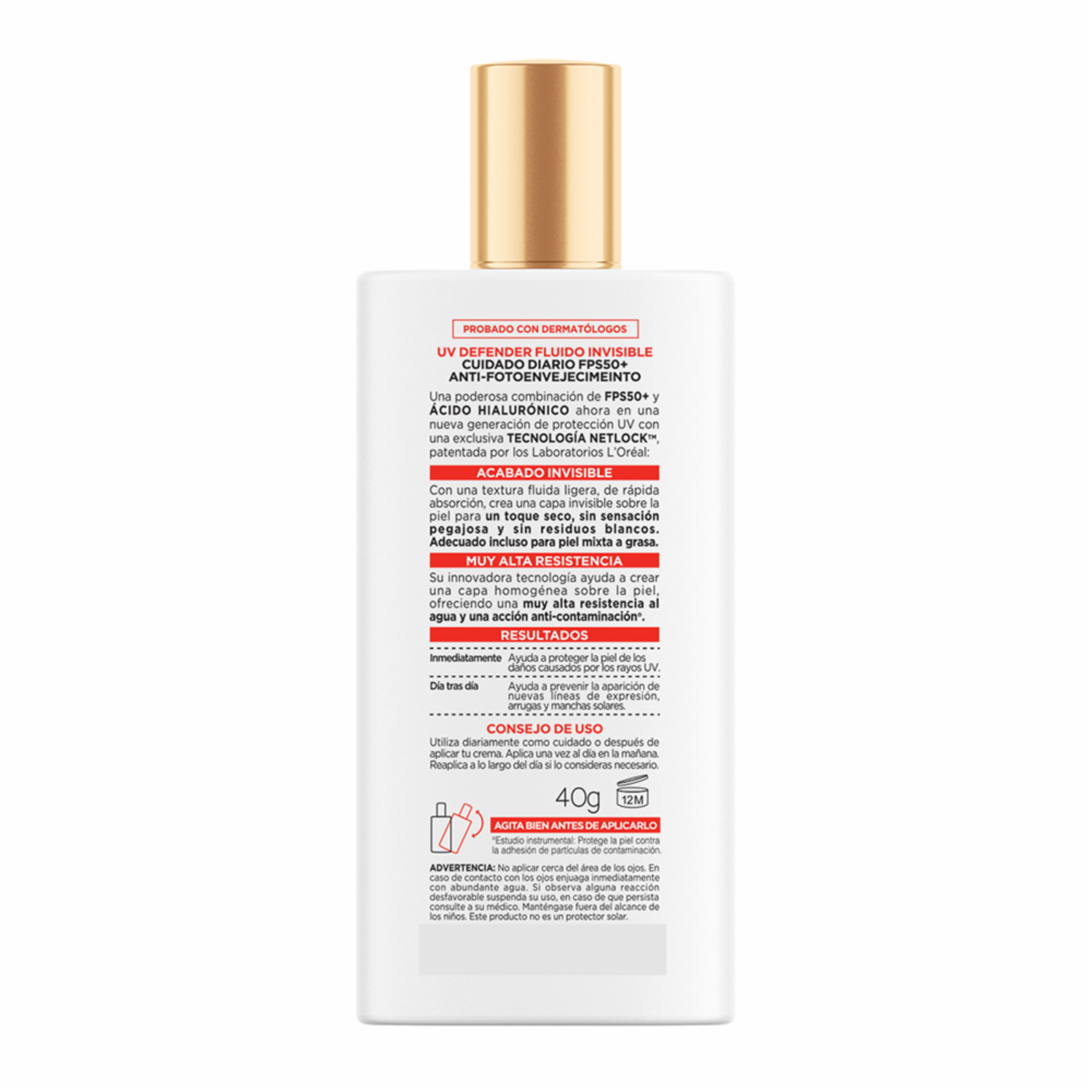 Protector Solar Facial Uv Defender Fps 50+ Fluido Invisible L’ORÉAL 40 G