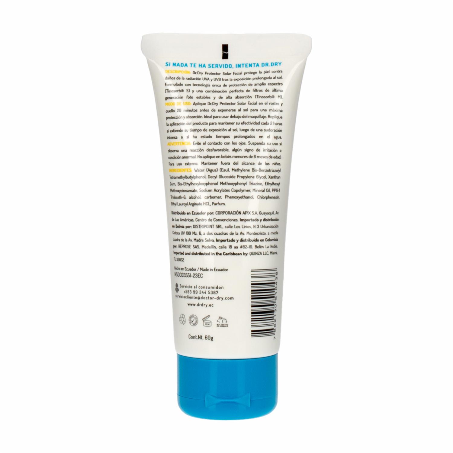 Protector Solar Para Rostro SPF 50 Para Todo Tipo De Piel DR.DRY 60 G