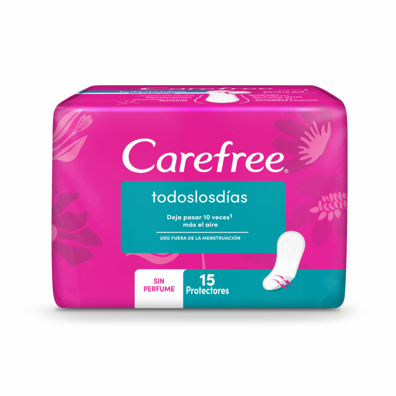 Carefree Todos los Días es un protector de ropa interior ideal para uso diario, pues absorbe la transpiración y deja pasar 10 veces más el aire, manteniéndote limpia y fresca todo el día