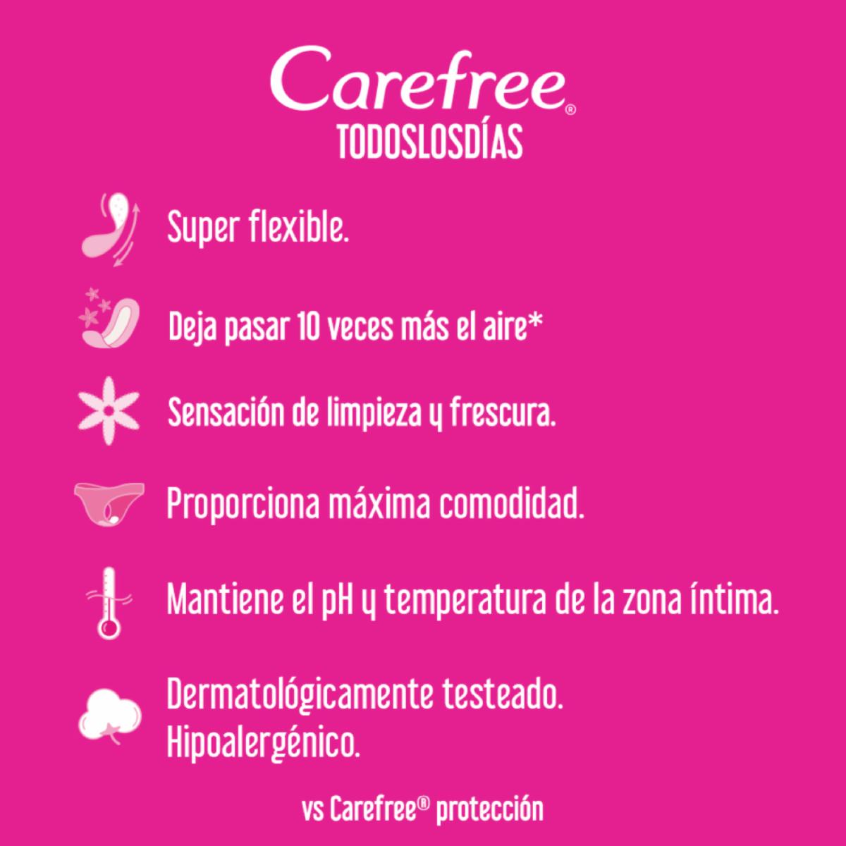 Protectores Diarios Todos Los Días Sin Perfume CAREFREE 60 U – CAREFREE. Disponible en nuestros locales. Precio y stock pueden variar según la tienda.