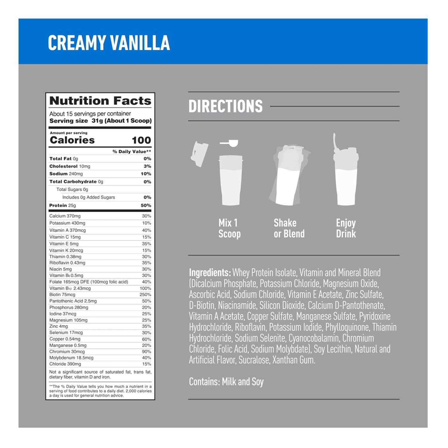 Proteina En Polvo 25 G De Suero De Leche Vainilla Creamy ISOPURE 454 G