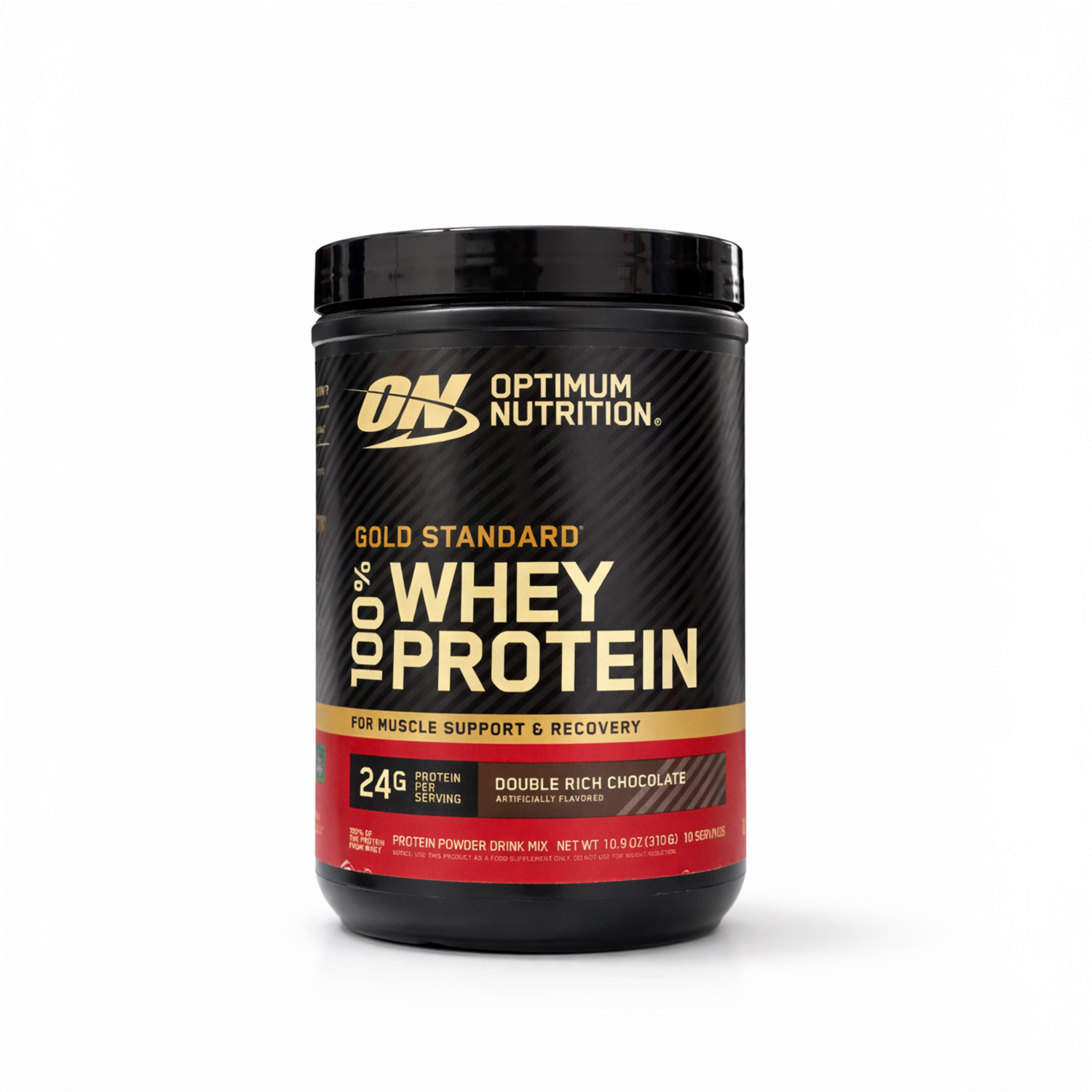 - Proteína Gold Standard 100% Whey en formato de 310 g sabor chocolate, diseñada para apoyar el crecimiento muscular y la recuperación tras el entrenamiento. Contiene aislado y concentrado de suero de leche de rápida absorción con BCAA y glutamina naturales, baja en azúcares y grasas. Fácil de mezclar para batidos pre o post-entreno y deliciosa opción proteica diaria