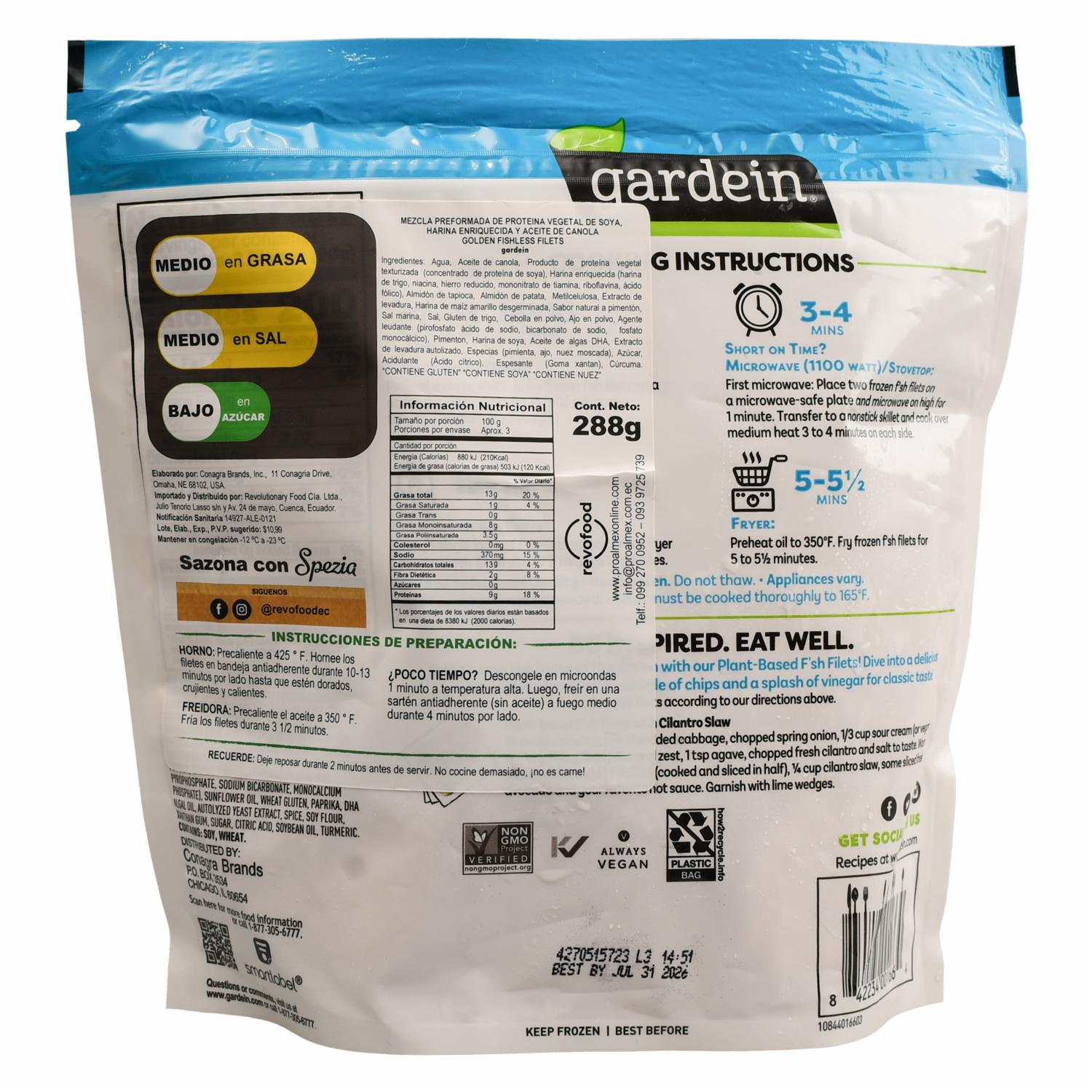 Proteína Vegetal Filete De Pescado GARDEIN 288 G