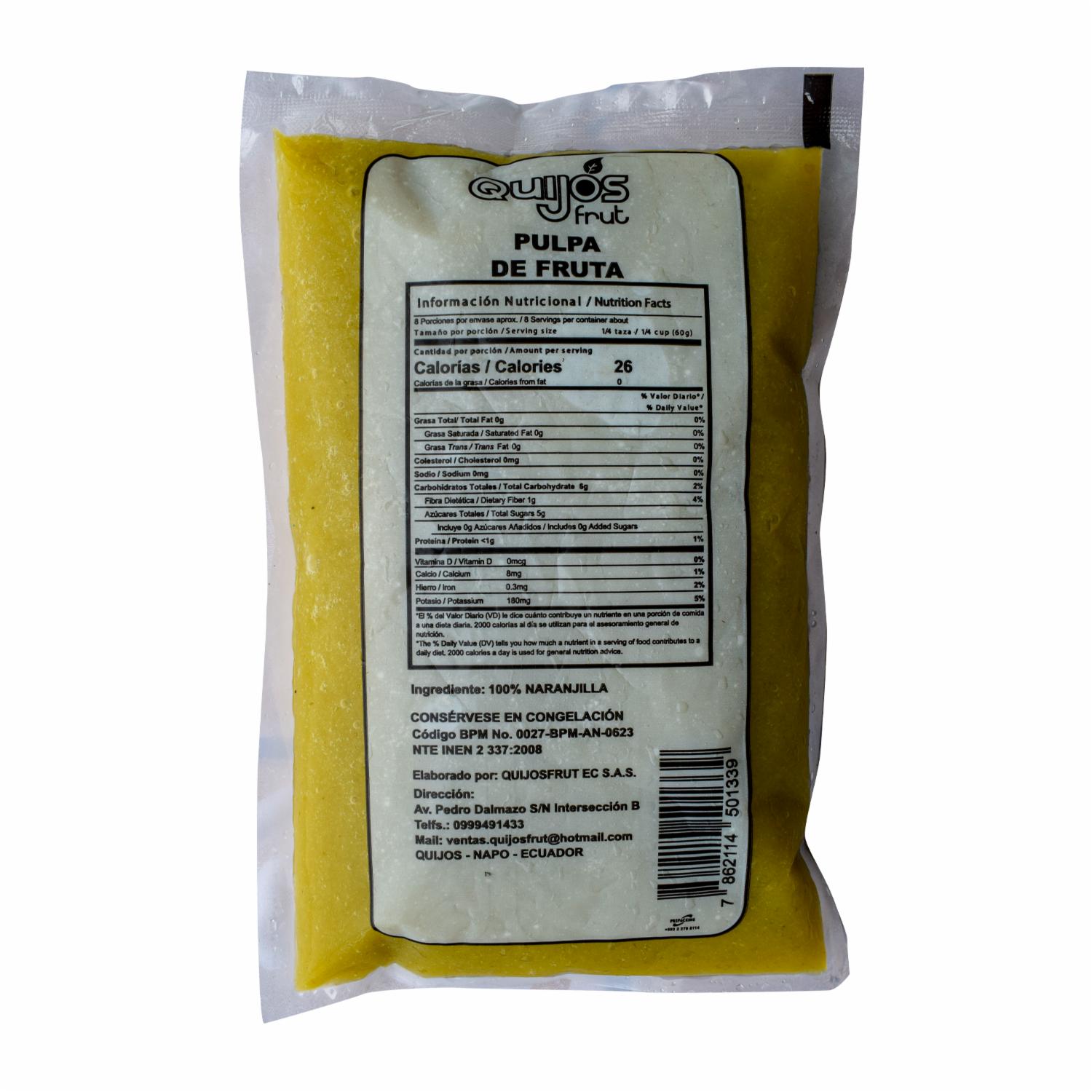 Pulpa De Fruta Congelada De Naranjilla QUIJOS FRUT 500 G
