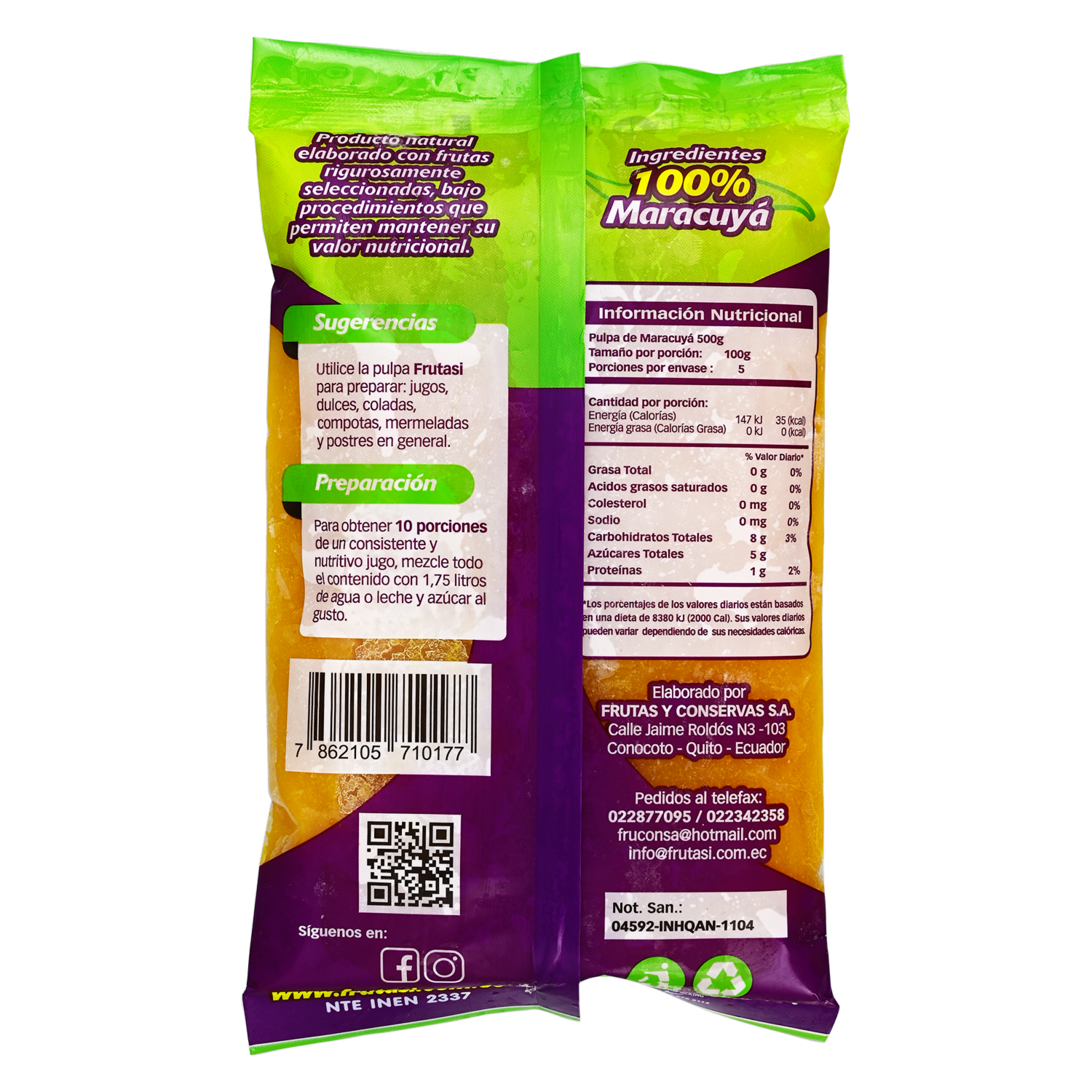 - Deliciosa pulpa de maracuyá empacada y congelada, ahorra tiempo empleando esta en sus batidos y jugos