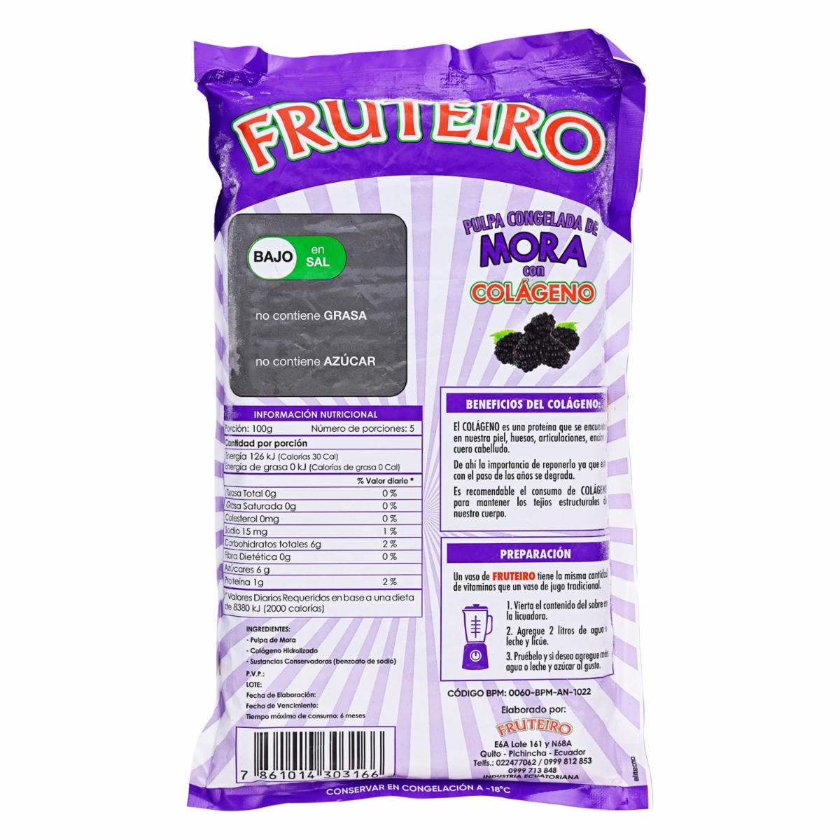 - Pulpa congelada de mora con colágeno