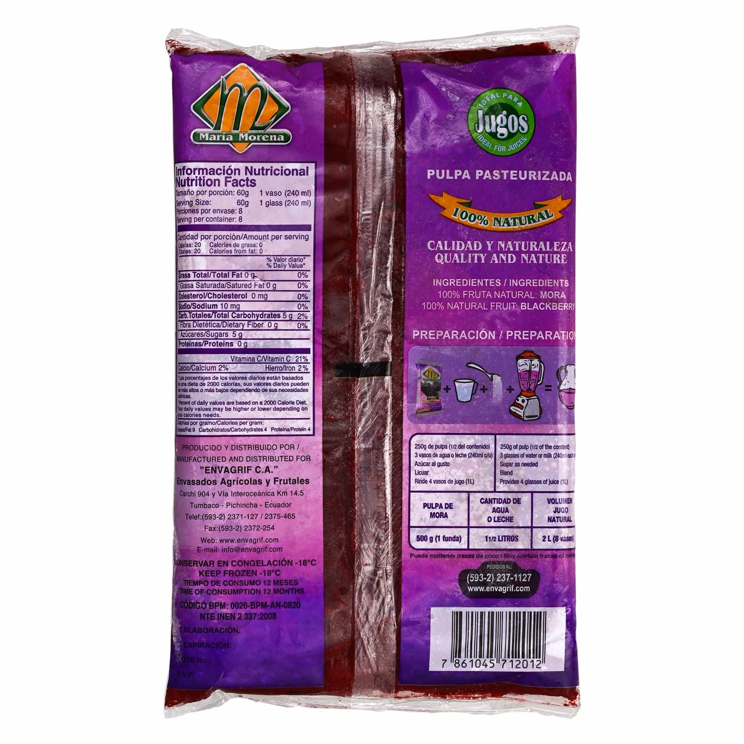 Deliciosa pulpa de mora congelada para mantener todo su sabor y propiedades