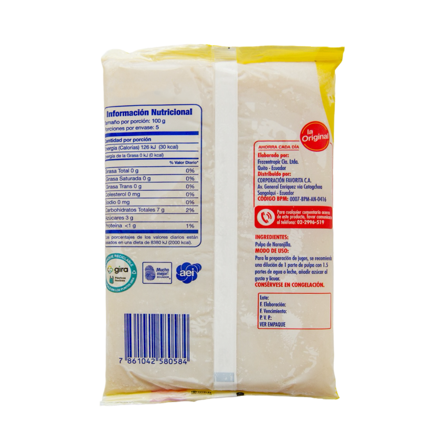 Pulpa De Naranjilla LA ORIGINAL 500 G – LA ORIGINAL. Disponible en nuestros locales. Precio y stock pueden variar según la tienda.