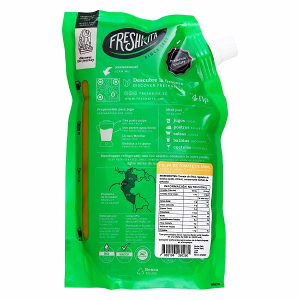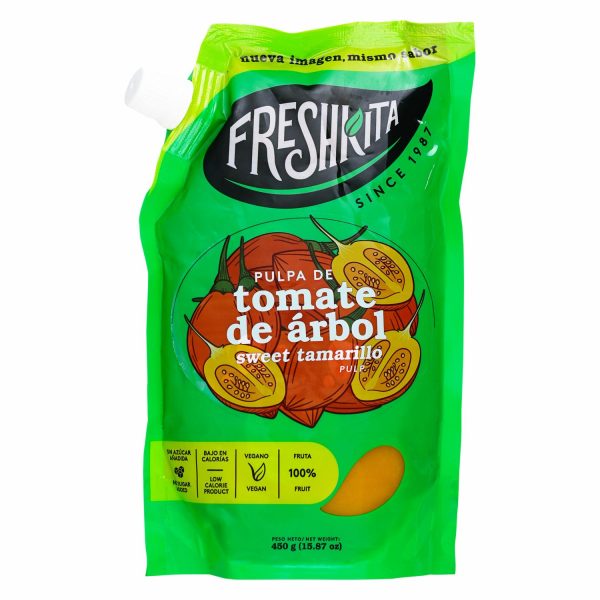 • La "Pulpa Fresca de Tomate Dulce Freshkita 450 g" es una presentación de pulpa de tomate dulce ofrecida por la marca Freshkita, que se encuentra en envases de 450 gramos