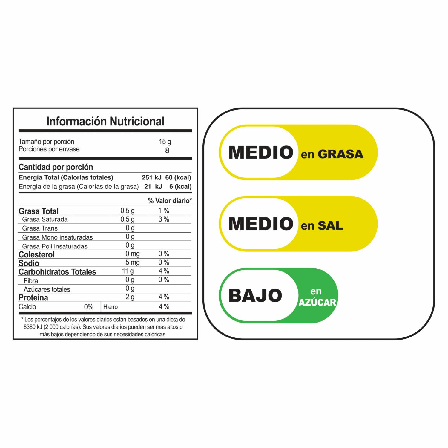 Presentación 125gr, Rinde 8 porciones, Listo en 5 min