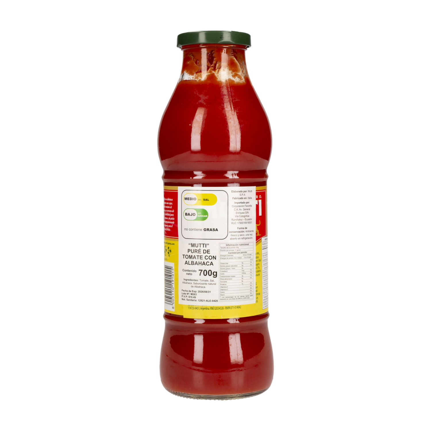Pure De Tomate Con Albahaca Ba MUTTI 700 g – MUTTI. Disponible en nuestros locales. Precio y stock pueden variar según la tienda.