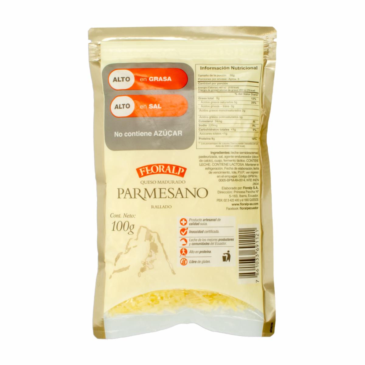 Q.parmesano Rallado FLORALP 100 G – FLORALP. Disponible en nuestros locales. Precio y stock pueden variar según la tienda.
