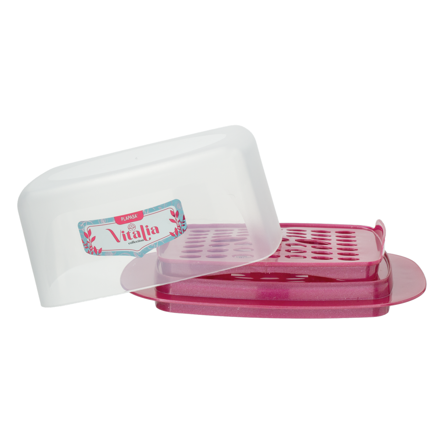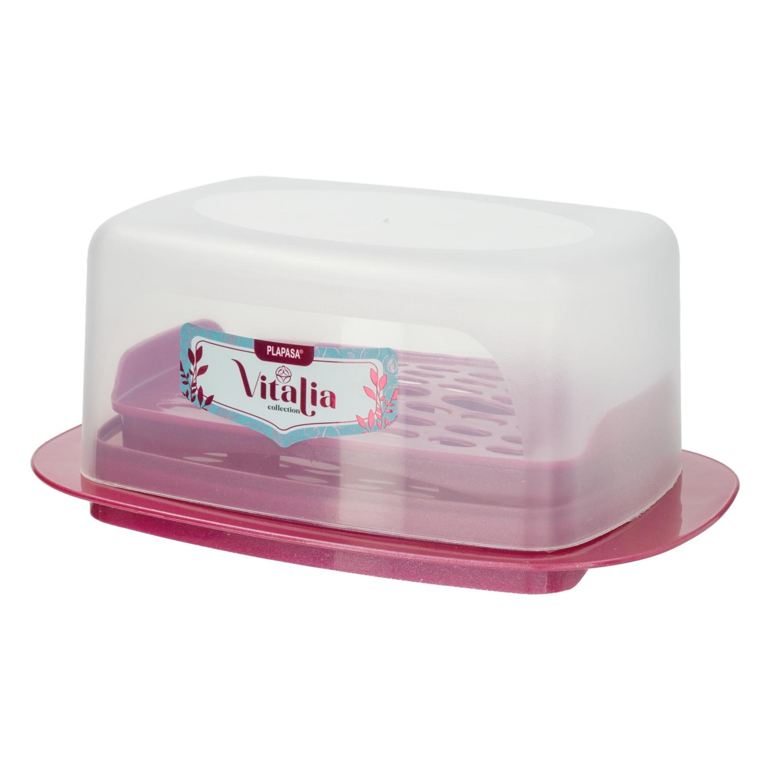 Quesera Mantequillera Reversible Burdeos Perlado Vitalia PLAPASA 21.5X14X9.5 Cm