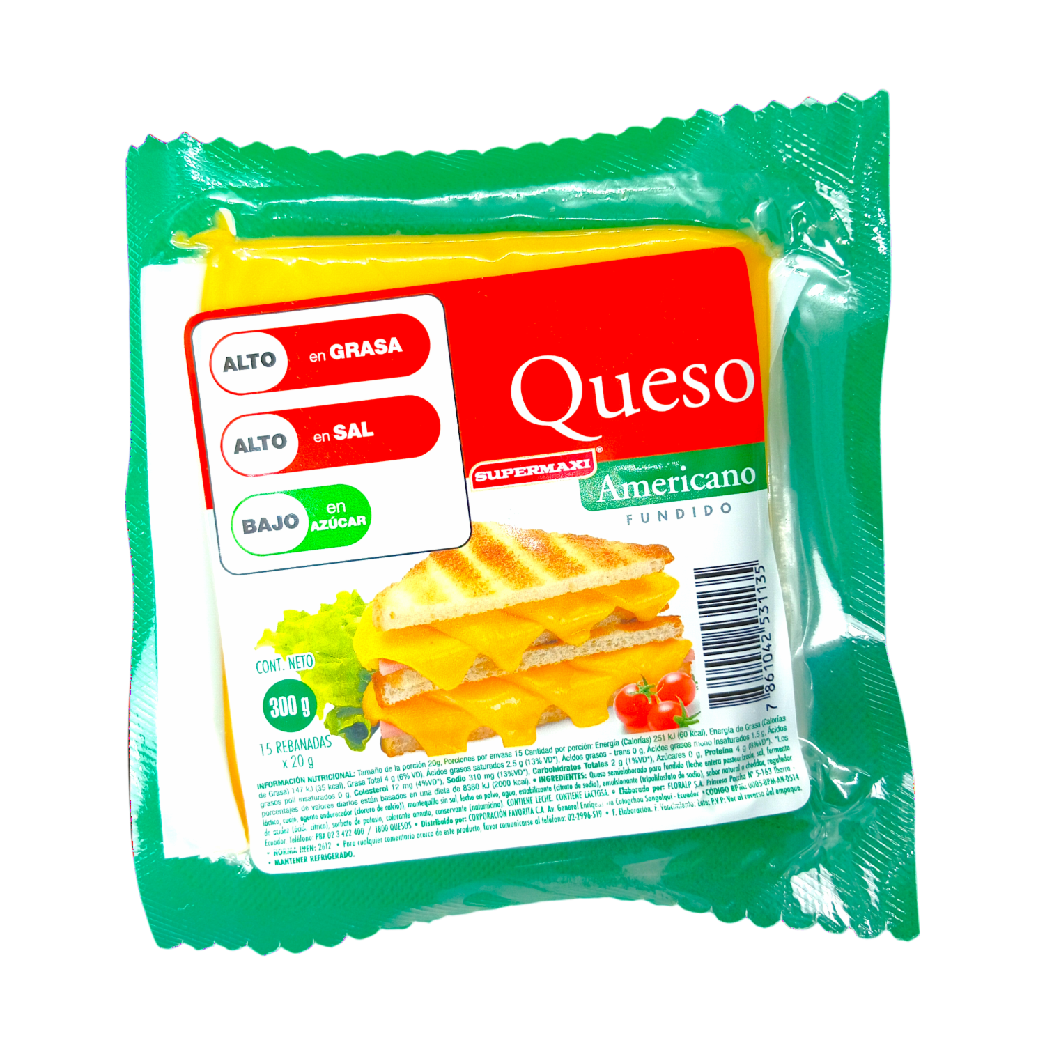 Queso Americano Rebanado SUPERMAXI 300g – SUPERMAXI. Disponible en nuestros locales. Precio y stock pueden variar según la tienda.