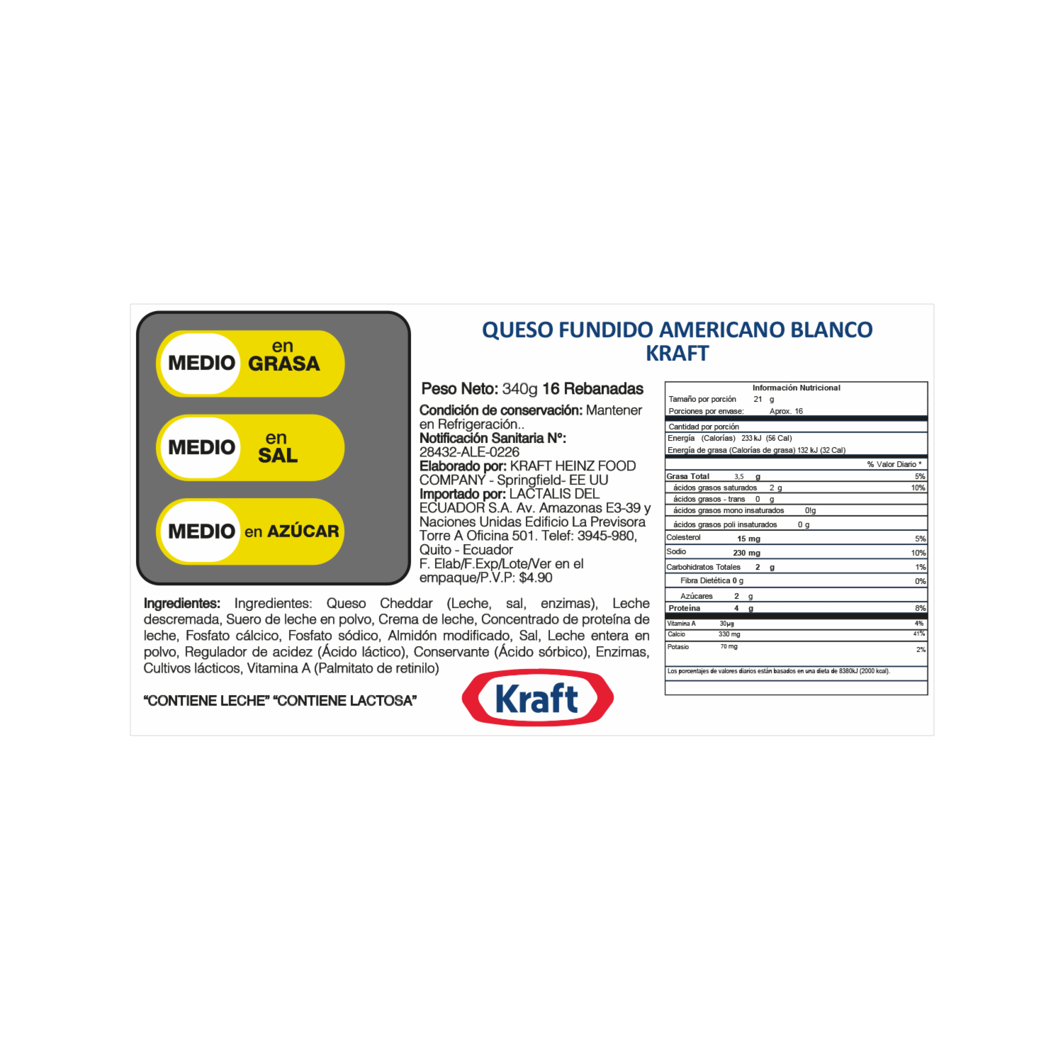Queso Americano White KRAFT 340 G – KRAFT. Disponible en nuestros locales. Precio y stock pueden variar según la tienda.