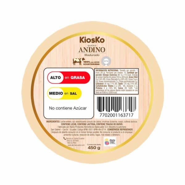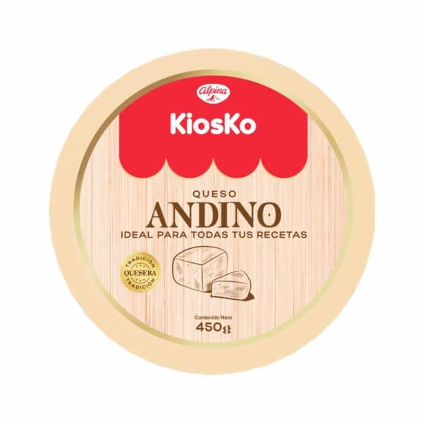 Queso Andino Kiosko Rueda 450 g, tradicional de los Andes sudamericanos, hecho con leche de vaca. Textura suave y cremosa, sabor intenso tras maduración. Perfecto para picar o combinar con mermeladas, frutas frescas y charcutería. Añádelo a tu carrito y mejora tus comidas con su sabor y versatilidad