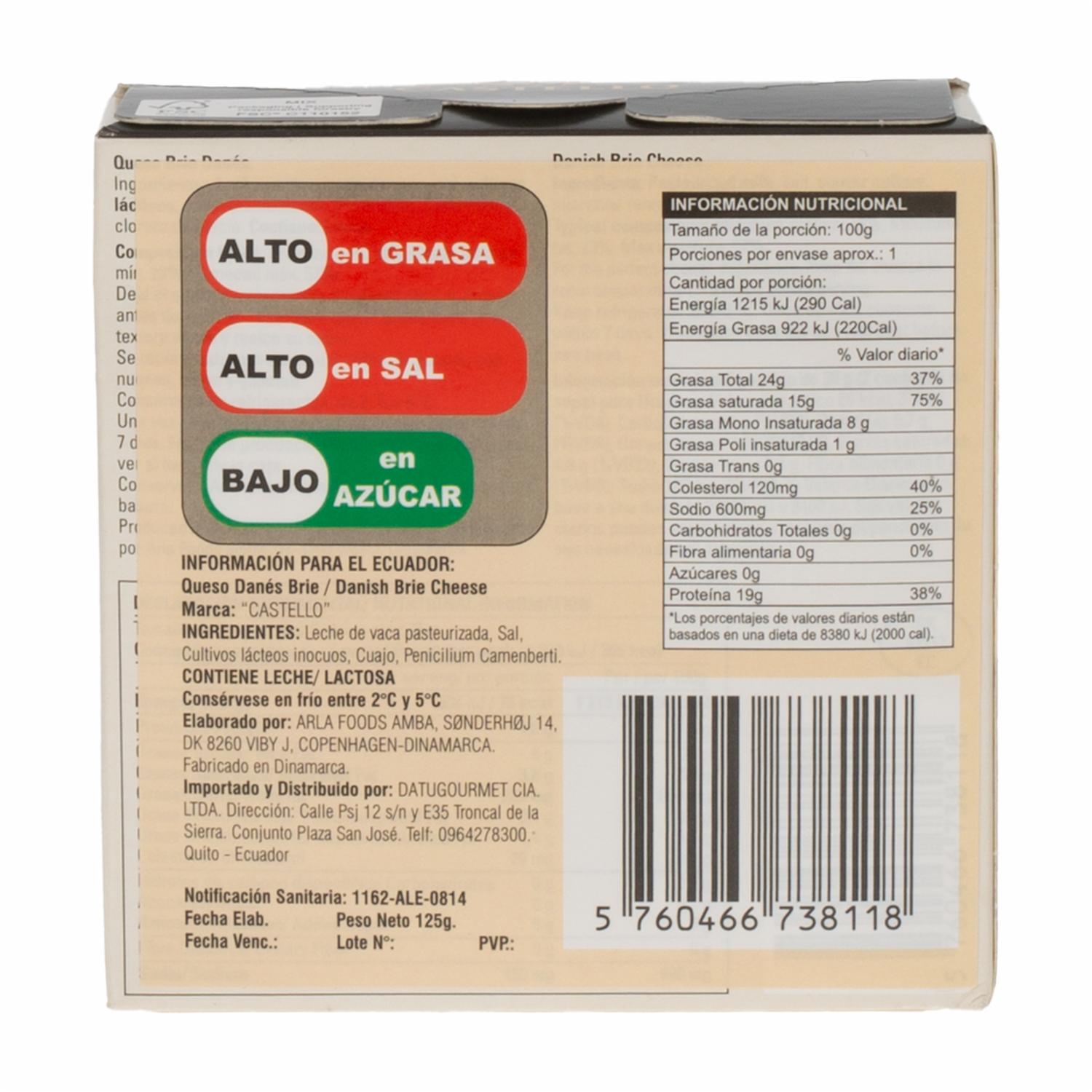 Queso Brie Danés CASTELLO 125 G – CASTELLO. Disponible en nuestros locales. Precio y stock pueden variar según la tienda.