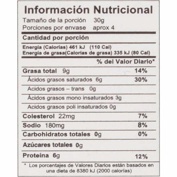 Queso semi maduro que se caracteriza por el desarrollo de un hongo blanco comestible en su superficie. Maduración 21 ? 30 días. Usos Sugeridos Para picar en una tabla de quesos con frutos secos y uvas, como entrada apanado servido con salsa de frambuesas. Como postre horneado con dulce de leche y nueces. Maridaje Vinos tintos jóvenes y frutados