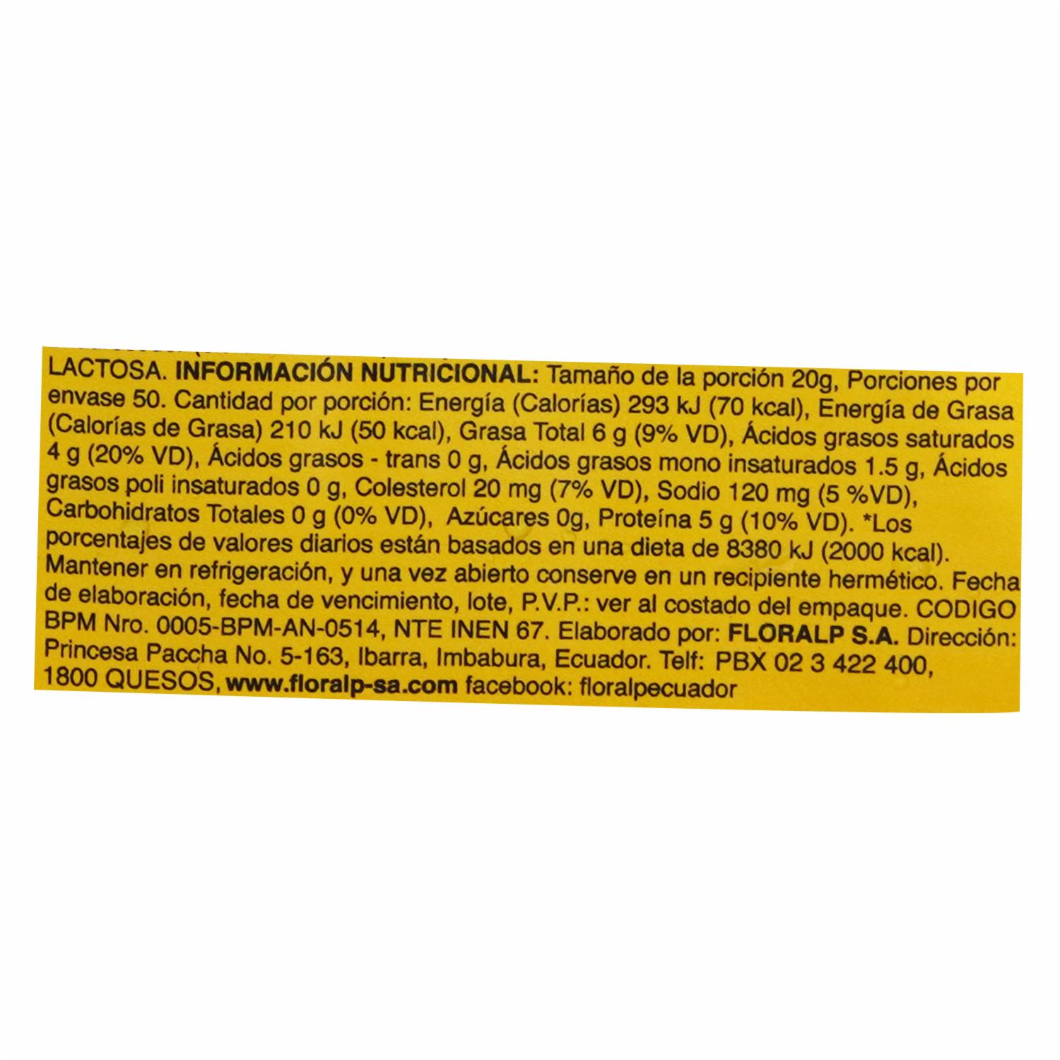 Queso Cheddar Bloque FLORALP 1000 G – FLORALP. Disponible en nuestros locales. Precio y stock pueden variar según la tienda.