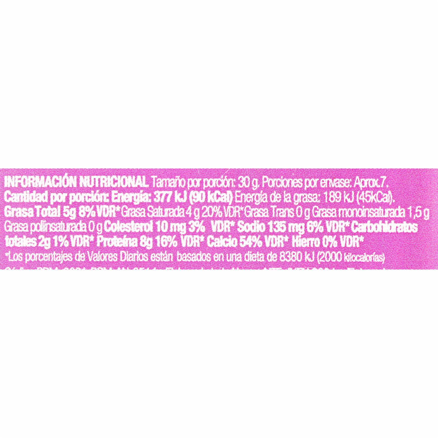 Quesos que tienen un grado de maduración desde 15 días en adelante, De sabor exquisito y textura cremosa, Viene en rebanadas y con separadores