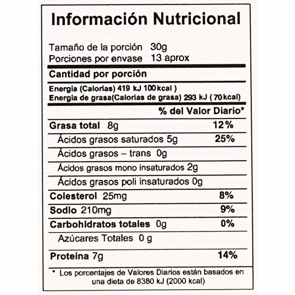 Queso madurado de pasta semidura de color naranja, y totalmente cerrada, elaborado con leche deslactosada