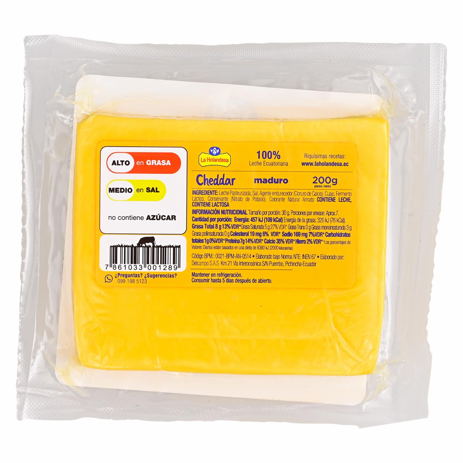 Queso Cheddar Maduro LA HOLANDESA 200 G