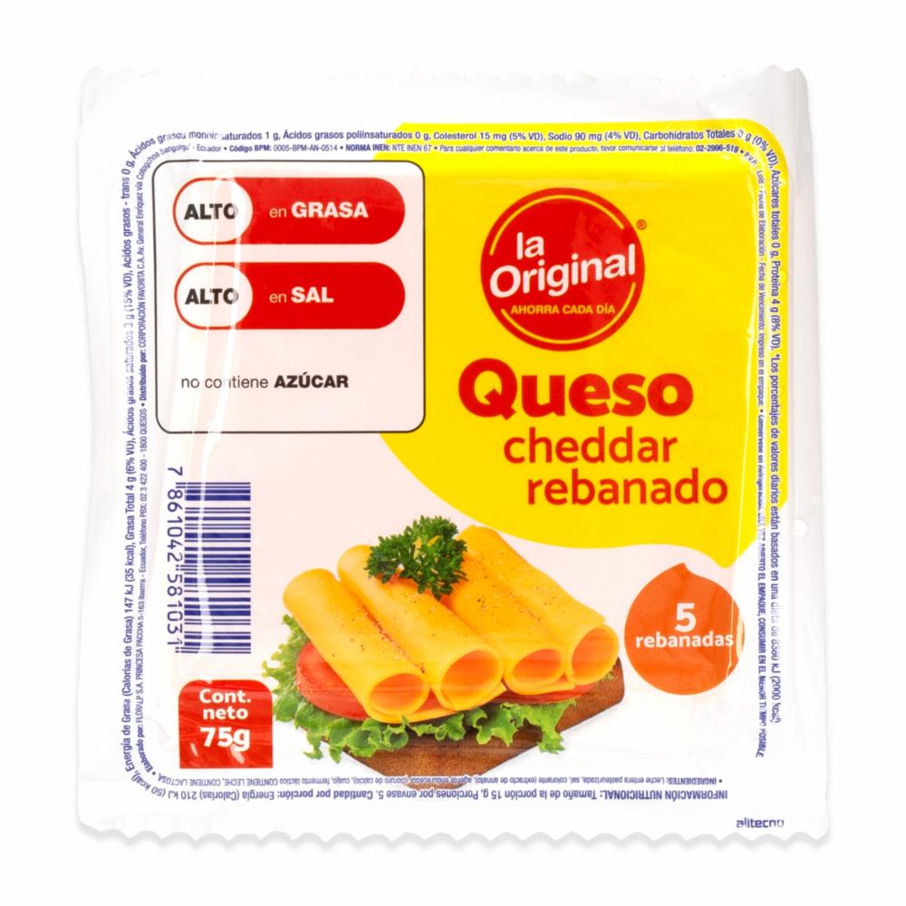 Queso Cheddar Rebanado LA ORIGINAL 75 G – LA ORIGINAL. Disponible en nuestros locales. Precio y stock pueden variar según la tienda.