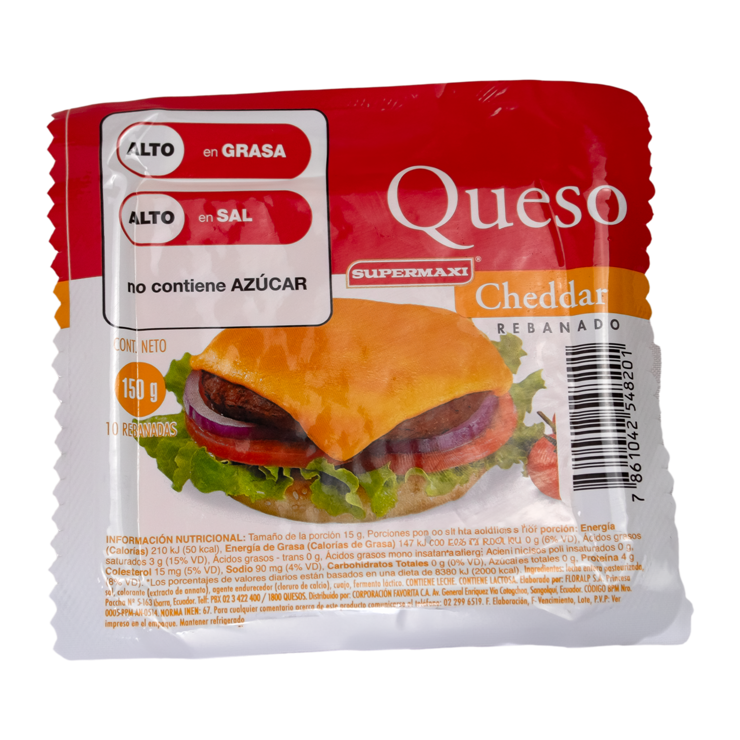 - Queso Cheddar rebanado, de sabor intenso y textura firme. Color amarillo característico y fácil de fundir. Práctico y listo para usar en comidas diarias