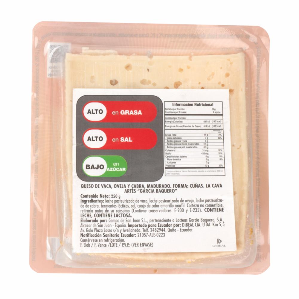 Queso Curado La Cata Artes GARCÍA BAQUERO 250 G – GARCIA BAQUERO. Disponible en nuestros locales. Precio y stock pueden variar según la tienda.