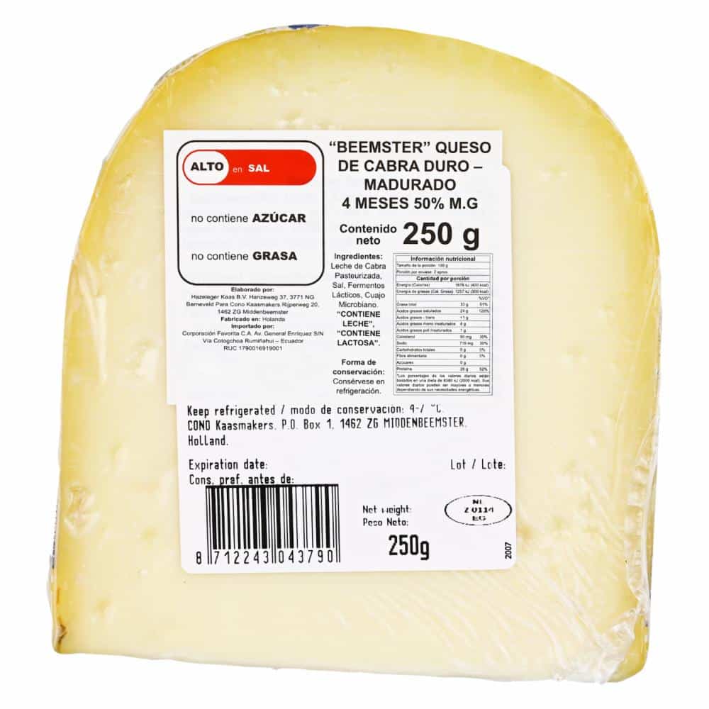 • El queso maduro de cabra Beemster tiene un sabor fuerte y distintivo debido a su proceso de maduración que dura al menos 6 meses. - Es un queso de textura firme y granulosa, con pequeños cristales de proteína que le dan un crujido agradable al masticar