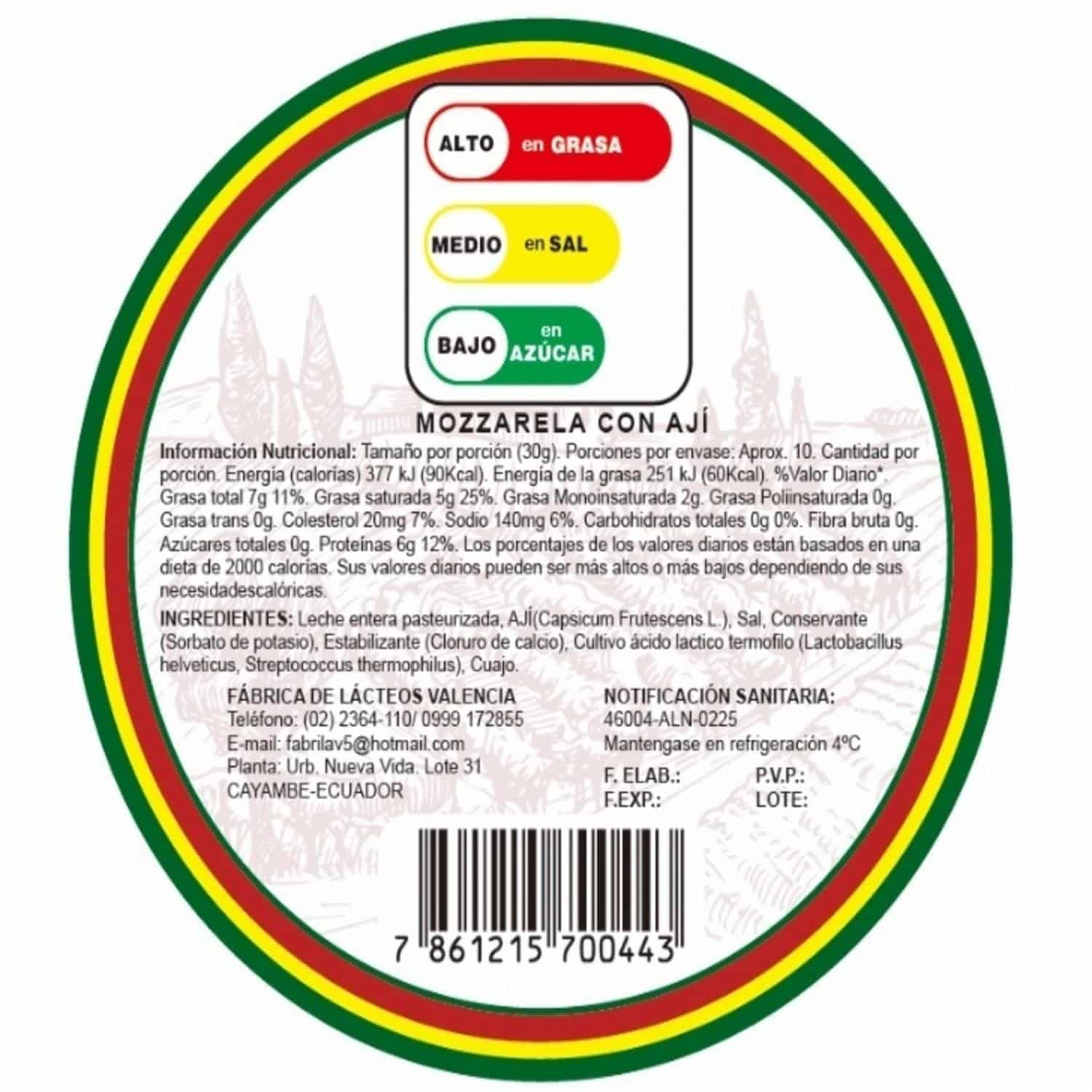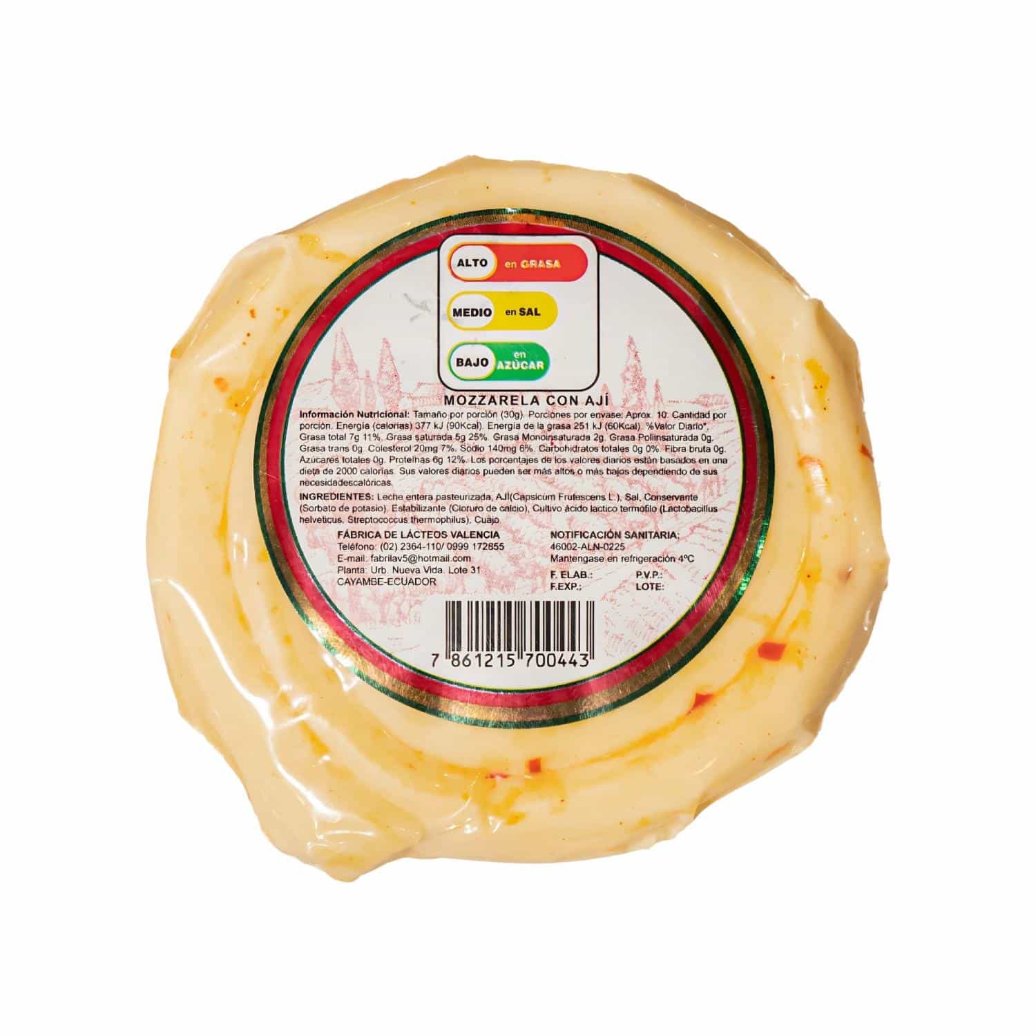 Queso mozzarella en forma de hoja elaborado con leche de vaca pasteurizada y ají seleccionado que aporta un sabor picante suave y equilibrado. Tiene una textura firme pero flexible, perfecta para fundirse en recetas calientes o servirse en tablas de quesos y entradas diferentes. Es rico en proteínas de alta calidad y es ideal para quienes buscan un queso con personalidad y un toque gourmet