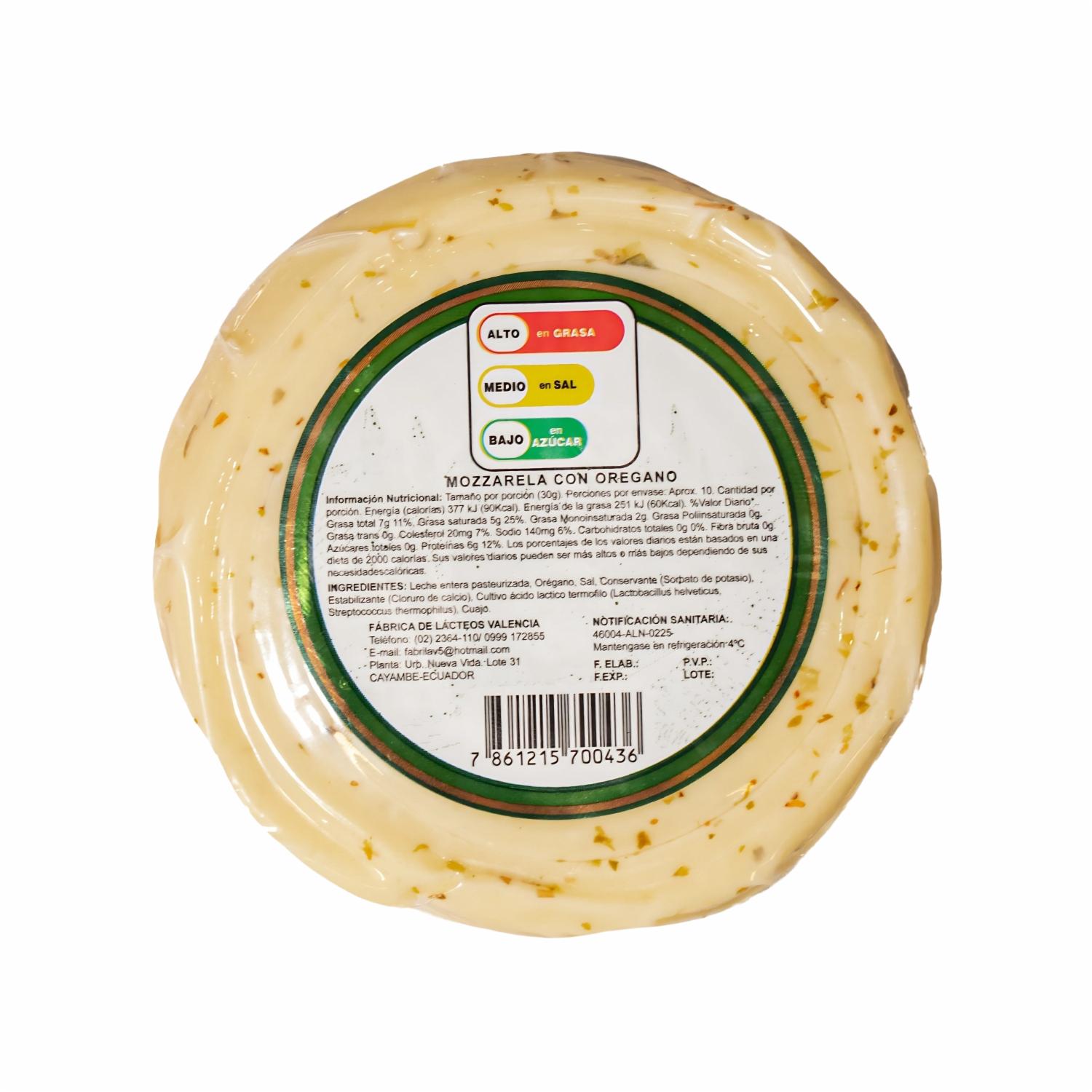 Queso mozzarella en forma de hoja elaborado con leche de vaca pasteurizada y un toque de orégano deshidratado que aporta un aroma y sabor mediterráneo distintivo. Su textura suave y elástica lo hace ideal para gratinar, rellenar y acompañar ensaladas, sándwiches o pizzas. Es una fuente natural de proteínas y calcio, siendo una opción versátil para el consumo diario o para preparaciones gourmet