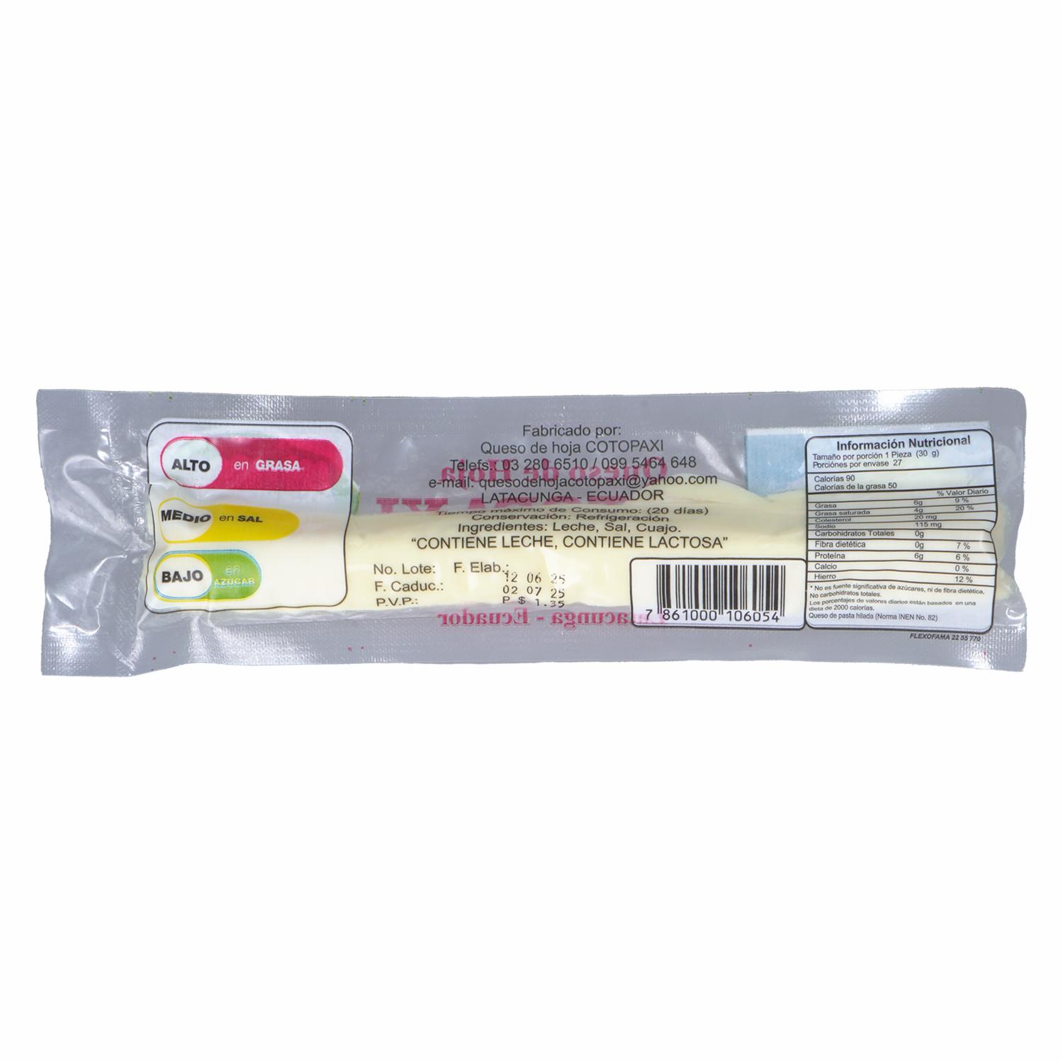 consultando preciosQueso De Hoja COTOPAXI 80g – COTOPAXI. Disponible en nuestros locales. Precio y stock pueden variar según la tienda.