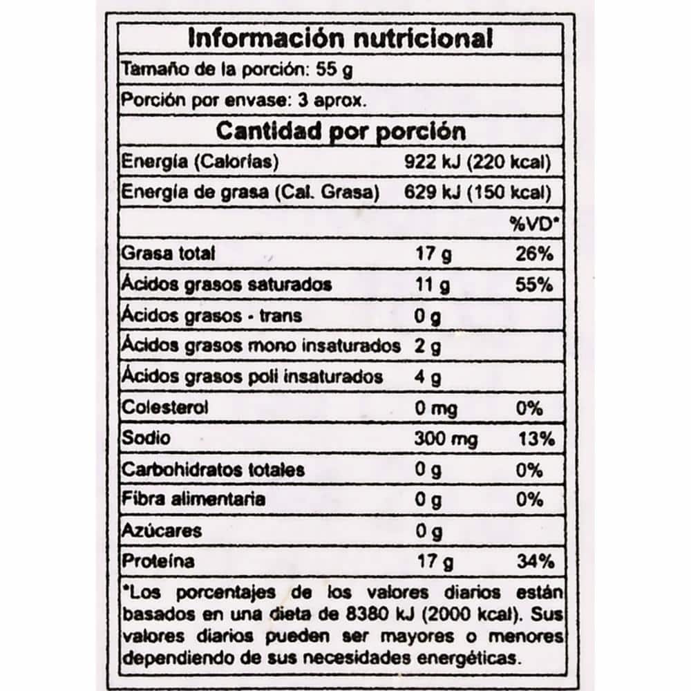 Ingredientes: Leche, sal (1,4%), cuajo vegetal. Fuertemente salado