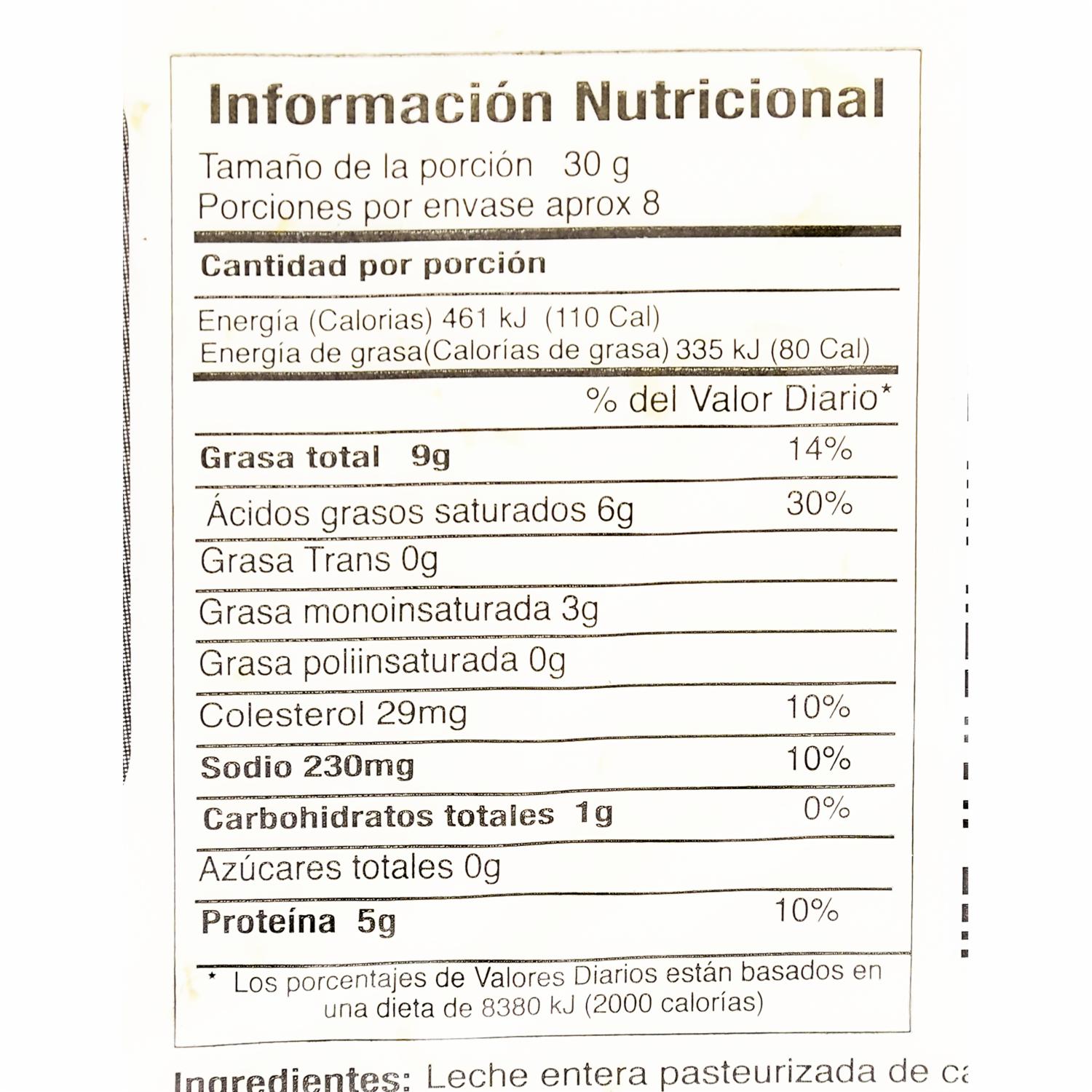 Es un queso blando, sin corteza, que se expande en porciones rectangulares o en forma de cuña su consistencia es sólida aunque flexible con algunas grietas y presentando en ocasiones pequeños huecos además al gusto es delicadamente suave y ligeramente ácido resultando en un sabor muy grato