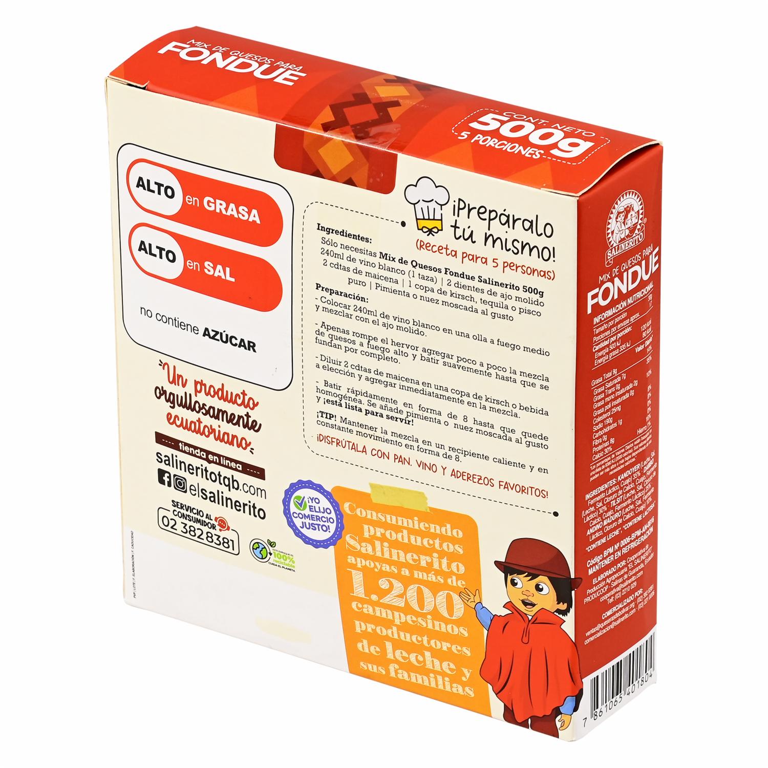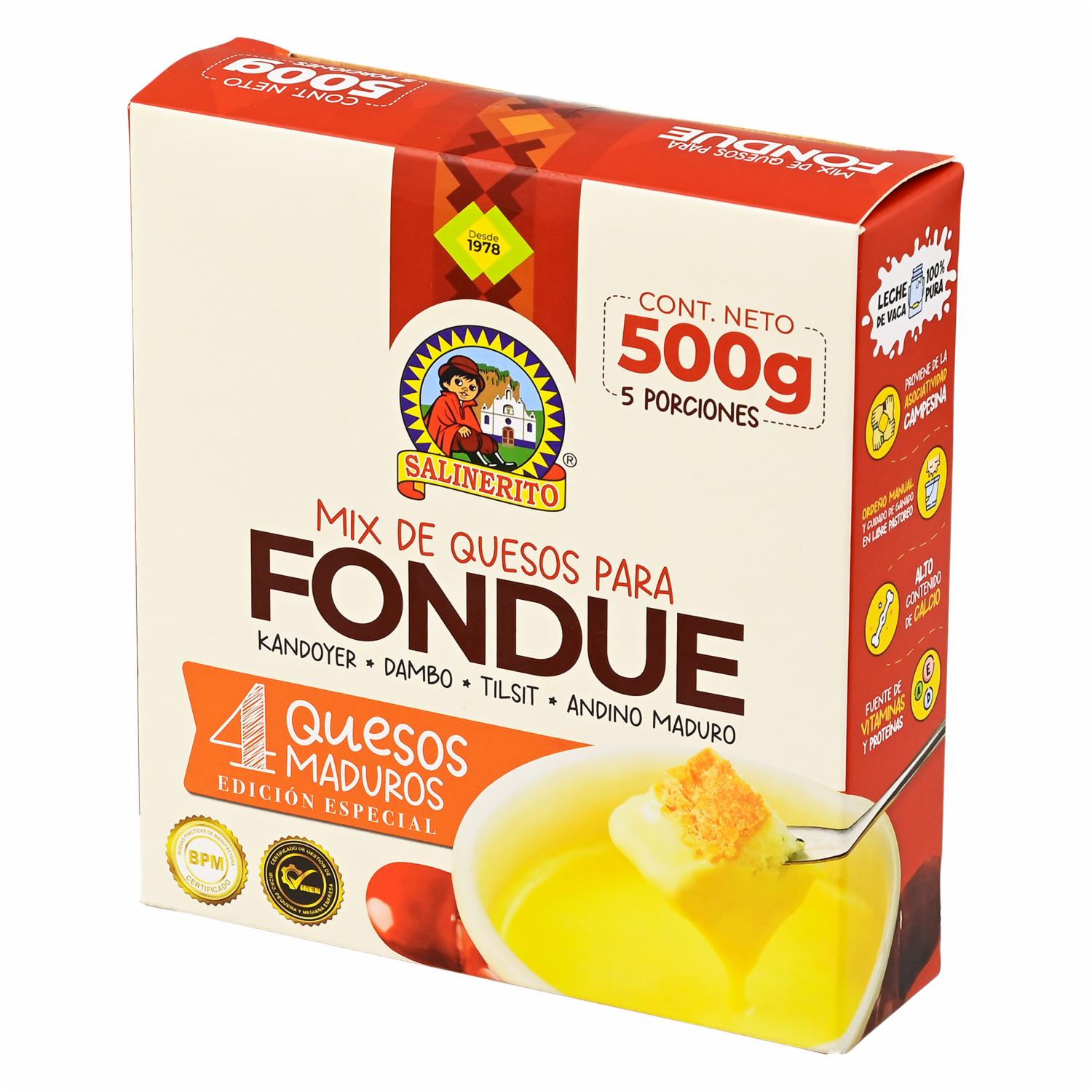 Queso Fondue Salinas SALINERITO 500g – SALINERITO. Disponible en nuestros locales. Precio y stock pueden variar según la tienda.