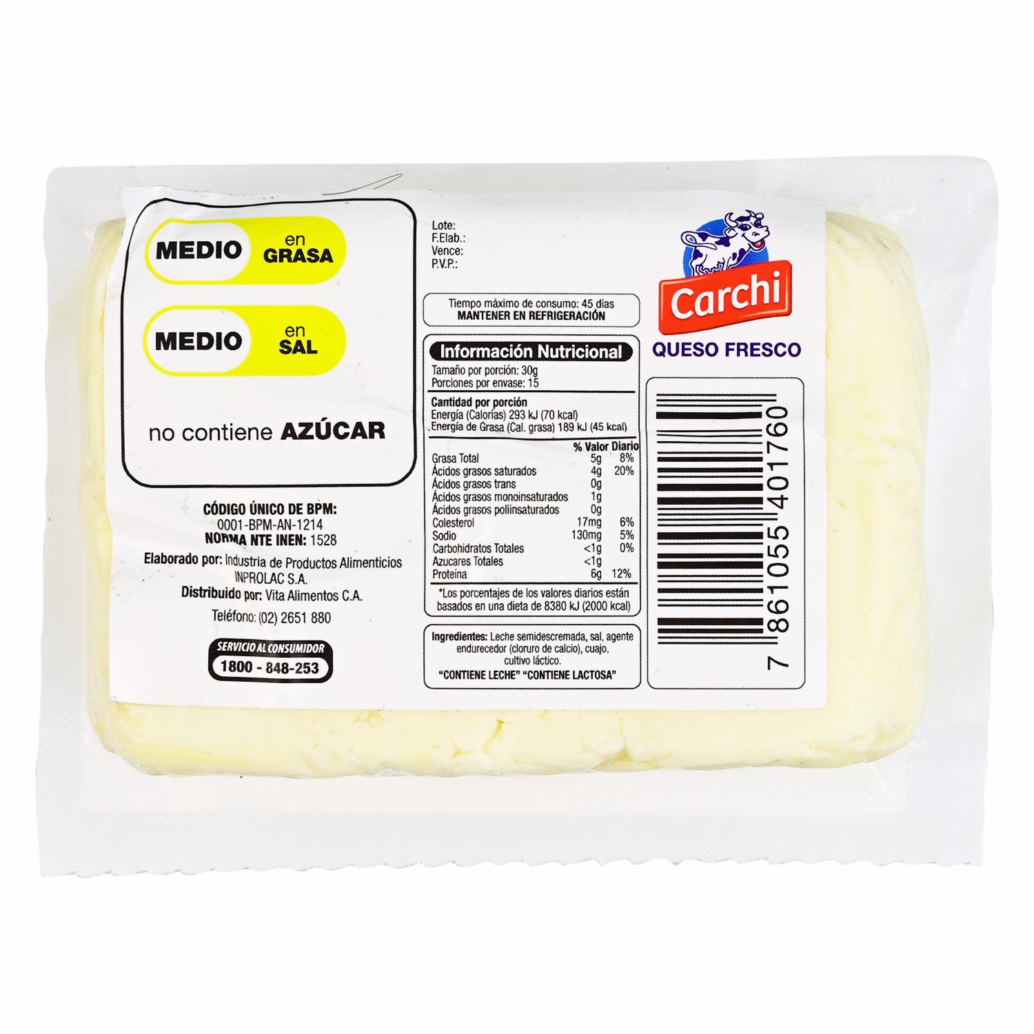 Queso Fresco VITA 450G – VITA. Disponible en nuestros locales. Precio y stock pueden variar según la tienda.