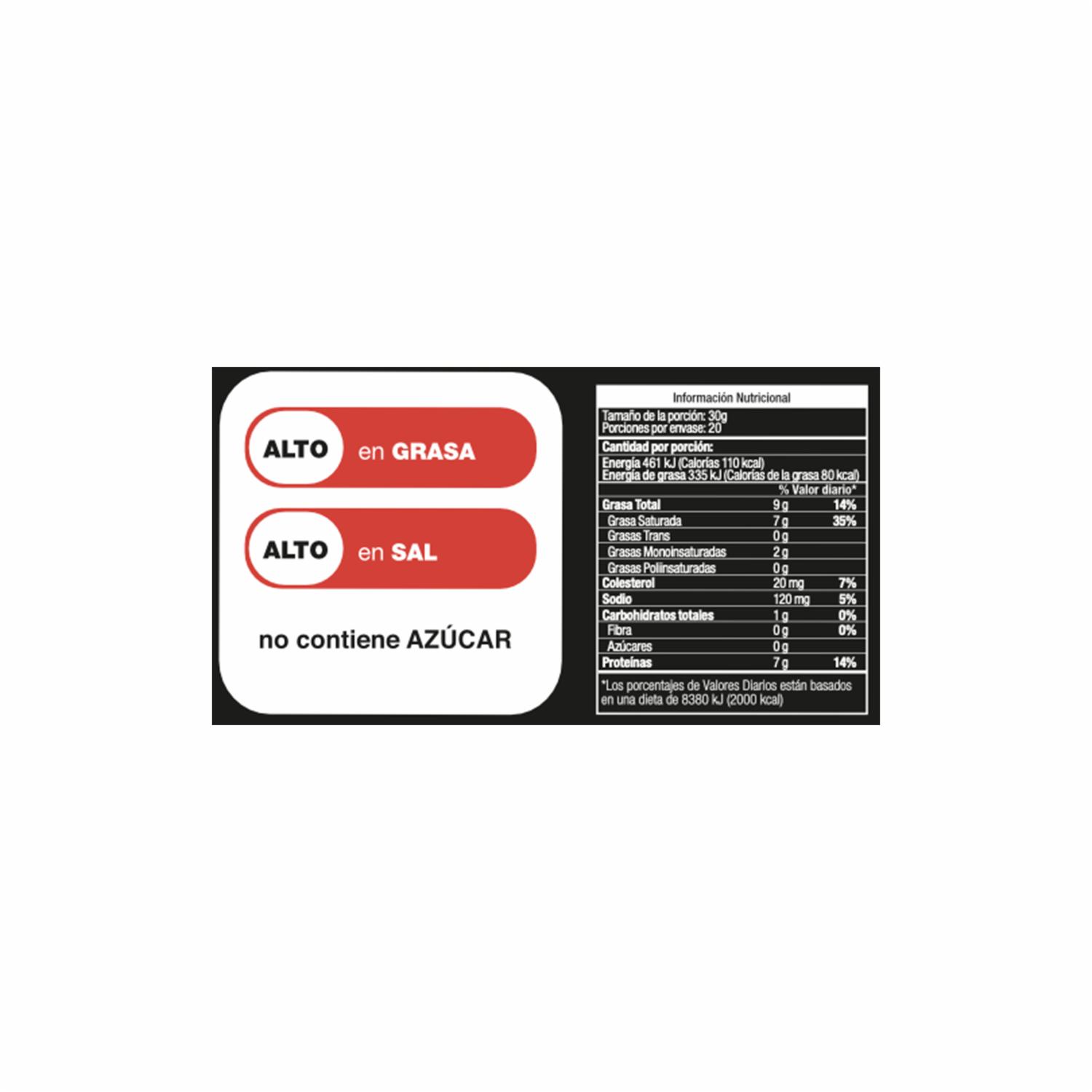 Uso doméstico e industrial, ideal para picar, para pizzas solo o en mezclas de quesos, ideal para gratinar, fondiu y sopas, por su textura es perfecto para fundir y derretir sobre cualquier receta,especialmente sobre macarrones con queso. Además se puede acompañar con un buen vino, ya que exalta el sabor del vino sin imponer su gusto