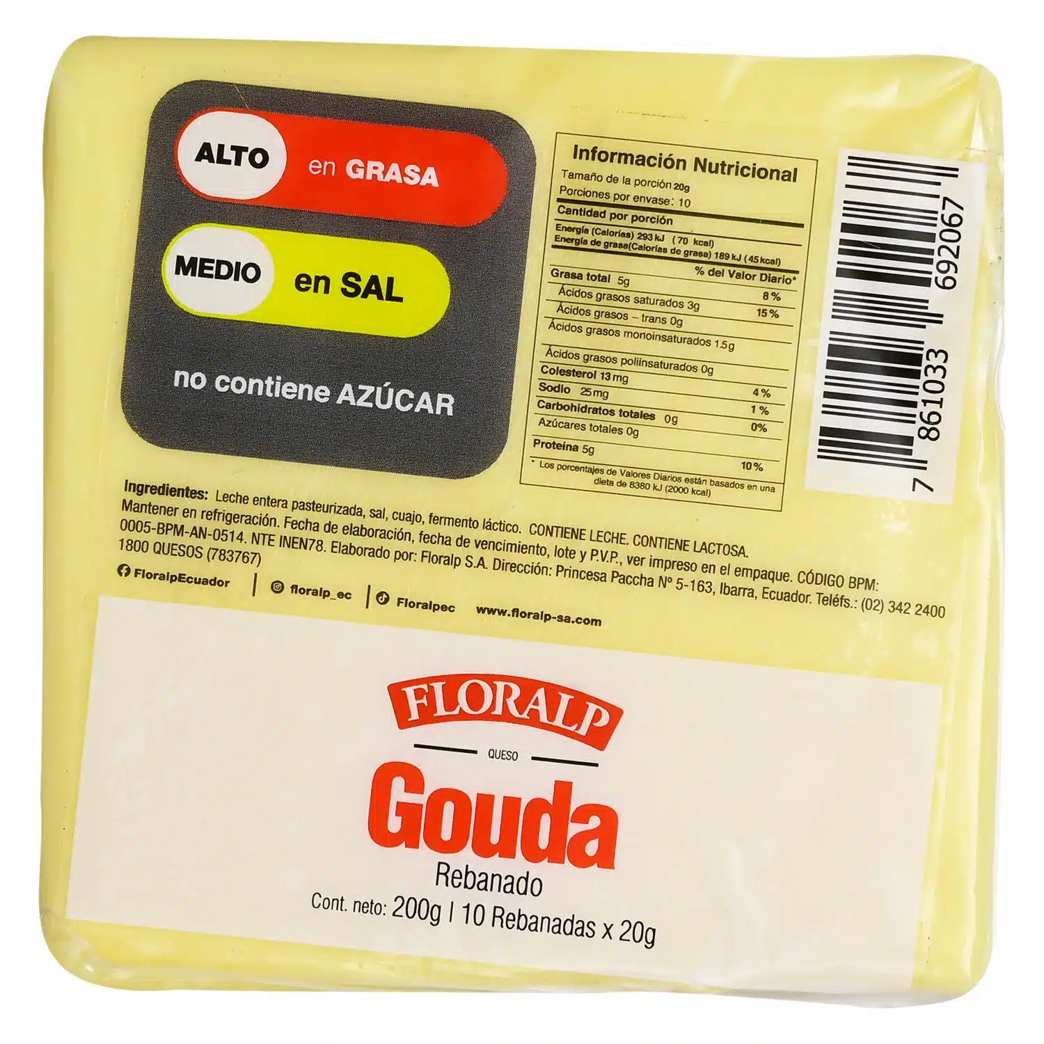 Queso Gouda Rebanado FLORALP 200 G – FLORALP. Disponible en nuestros locales. Precio y stock pueden variar según la tienda.