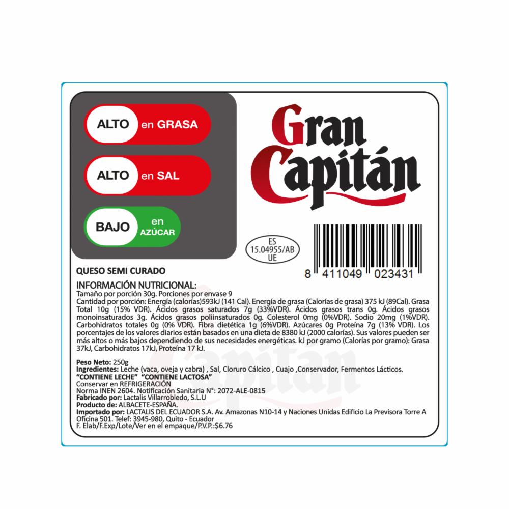 Queso Gran Capitán Semicurado Queso PARMALAT 250 G