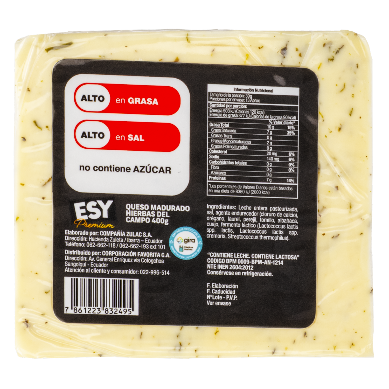 - Un queso semimaduro con una mezcla exquisita de seis hierbas finas cultivadas en HaciendaZuleta, que aporta un aroma y sabor inolvidables. Perfecto para tablas, tostadas o ensaladas gourmet