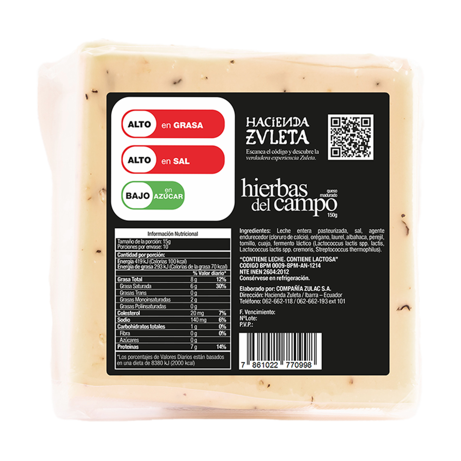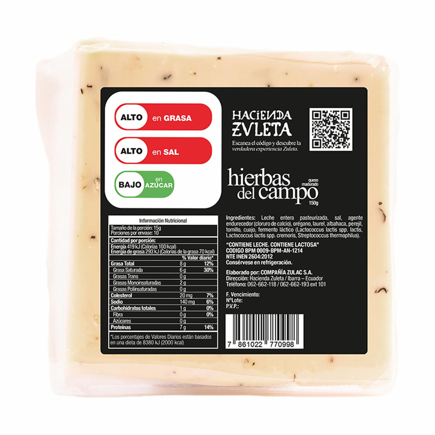 Queso Hierbas Rebanado HACIENDA ZULETA 150 G